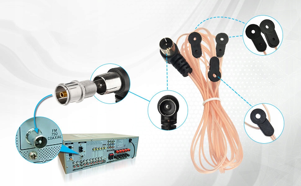 5. Підходить для звукових систем Yamaha, JVC, Sherwood, Pioneer, Denon, Panasonic, Onkyo, Sony, настільних колонок, радіо тощо; Підтримує UNBAL 75 Ом. (Будь ласка, перевірте гніздо AM-антени на вашому стереоприймачі перед покупкою)