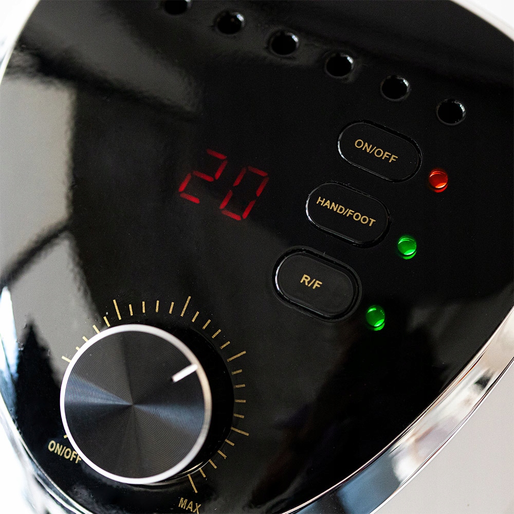 Надпотужний, багатофункціональний фрезер для манікюру та педикюру керується інтуїтивно зрозумілою кнопкою система з рідкокристалічним екраном, який показує швидкість обертання.