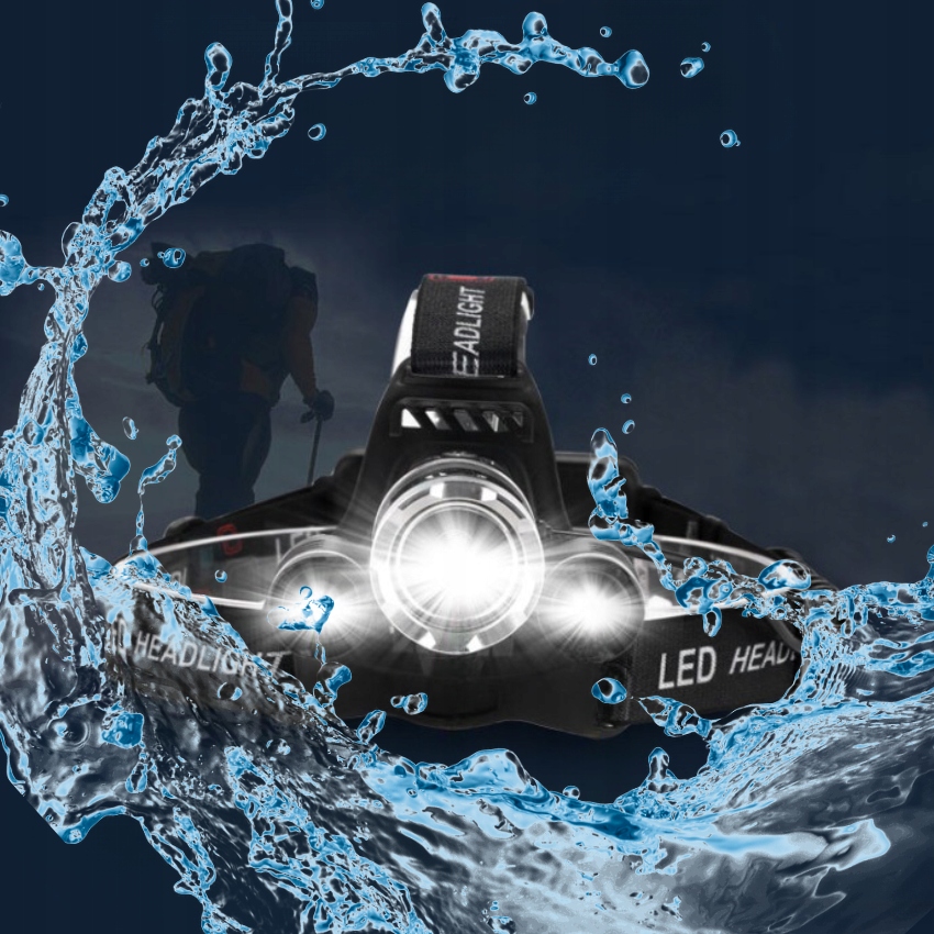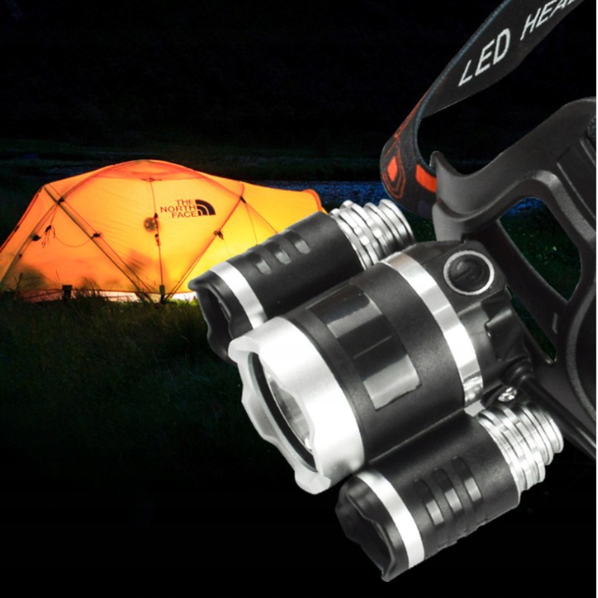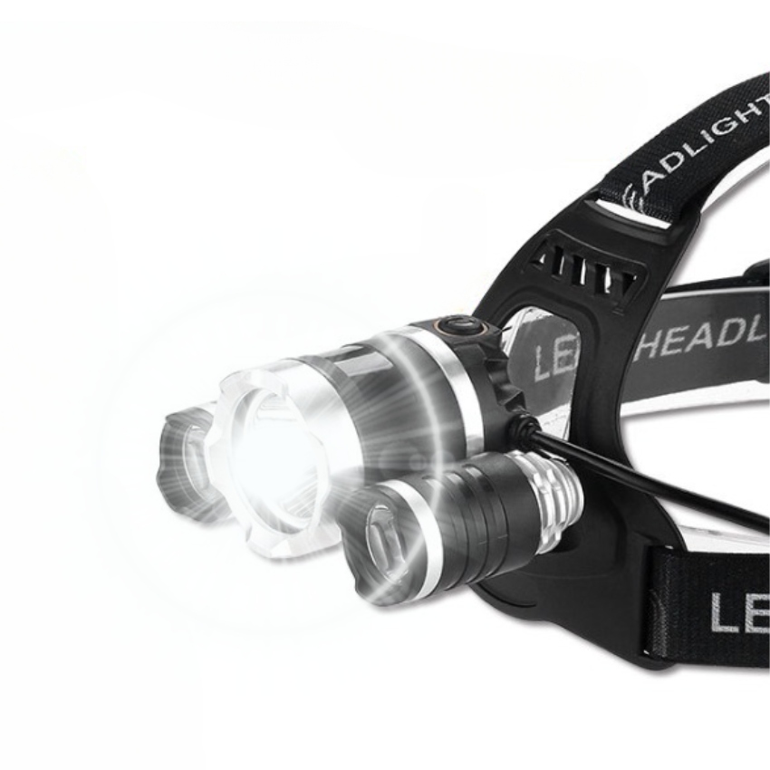 Надпотужні налобнісвітлодіодні фари, оснащені 3 дуже сильними діодамиCREE, що живляться від сильних двох акумуляторних батарей 18650 4200 мАг 3,7 В.