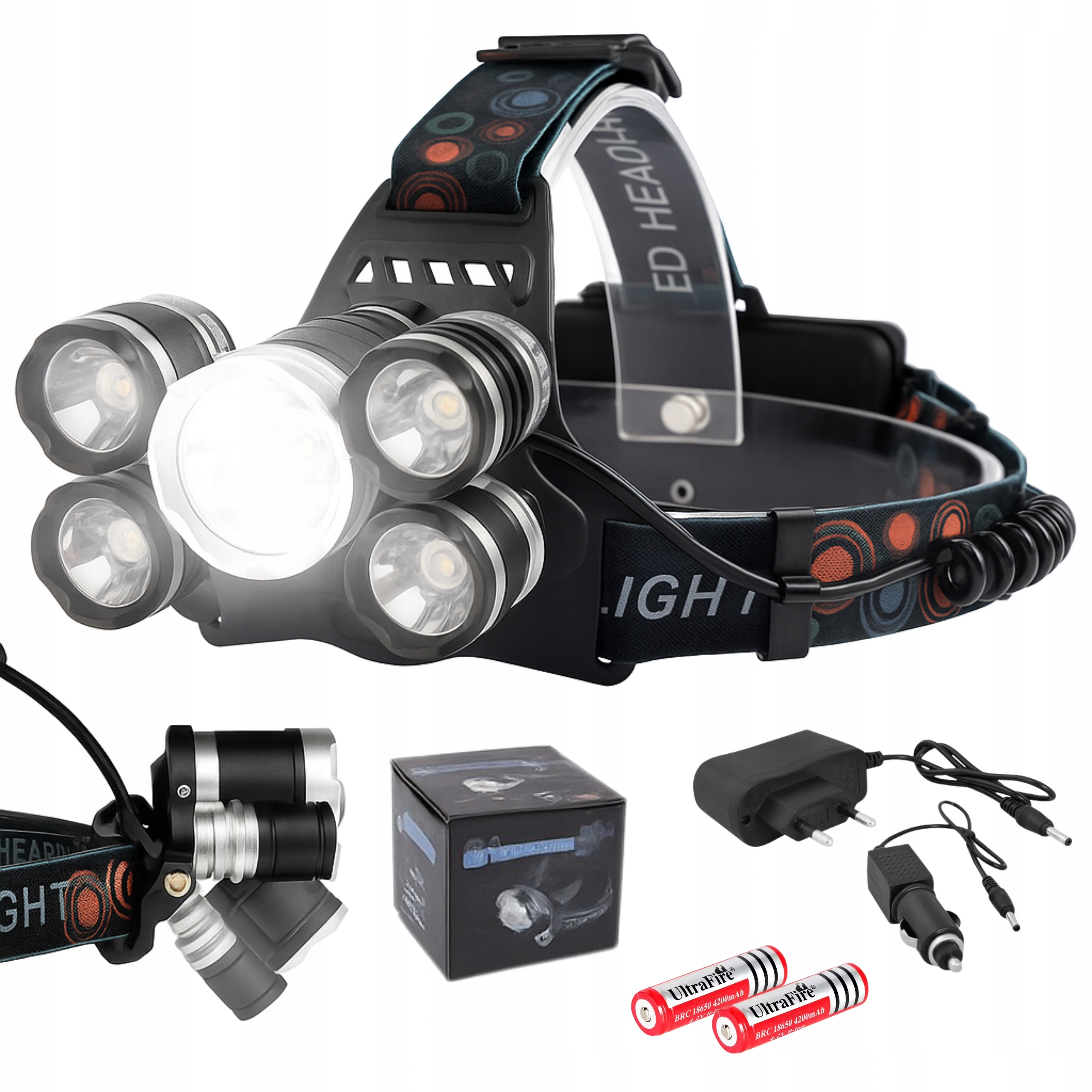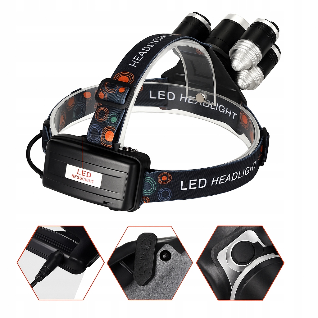 - 5 світлодіодних налобних ліхтарів CREE