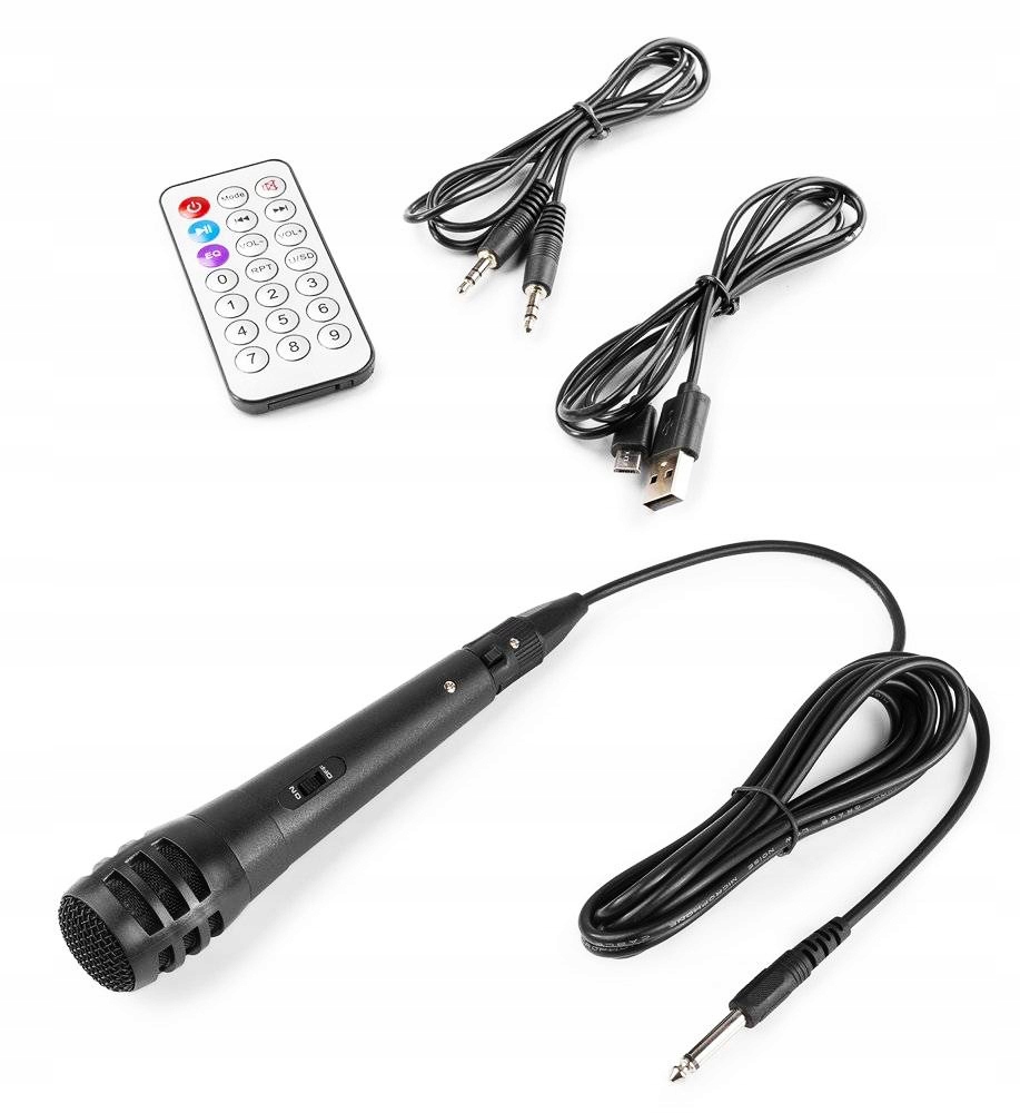 Набір портативних колонок із вбудованим підсилювачем вихідною потужністю 100 Вт забезпечить максимум розваг кожному, незалежно від віку. Безсумнівно, найпривабливішою особливістю набору є функція караоке. Мікрофон, що входить до комплекту, дозволить кожному поділитися своїми вокальними здібностями.