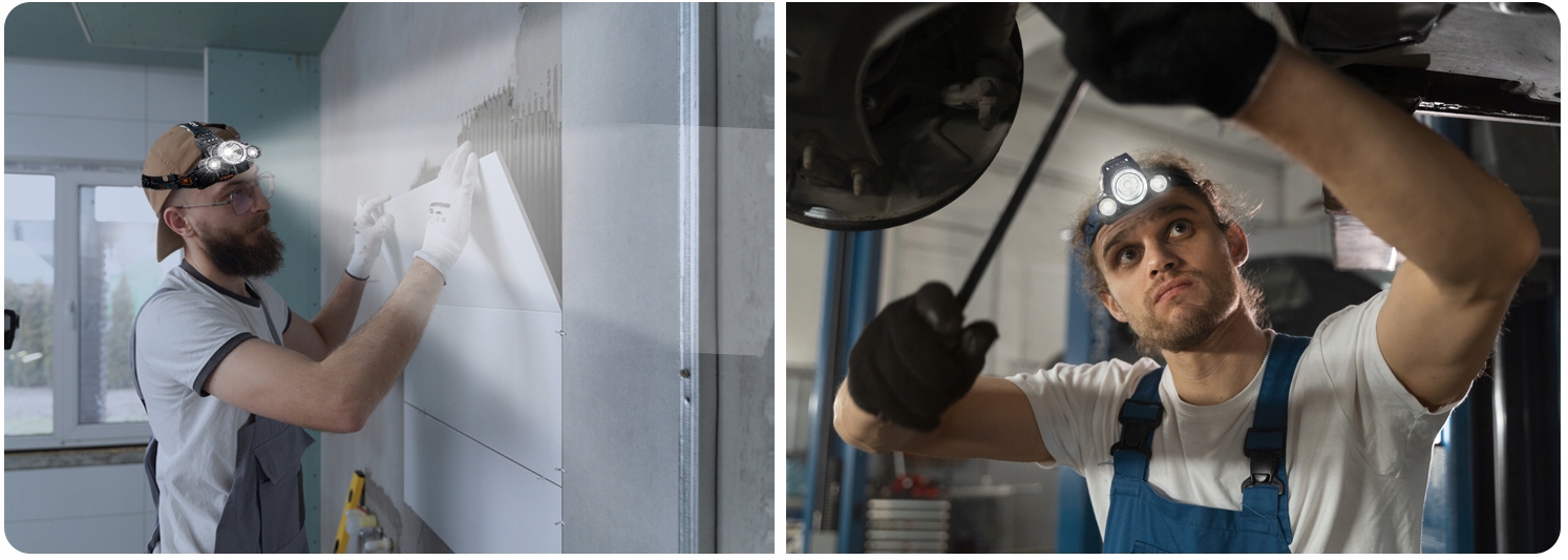 Налобний ліхтар є незамінним робочим інструментом для людей, які працюють у темряві. Використовують машини, будівельники, електрики тощо «налобні ліхтарі» » за рахунок зручності роботи. Дозволяють освітлювати робоче місце, не відриваючи руки, що суттєво впливає на комфортність виконуваної діяльності, яка безпосередньо впливає на ефект роботи! Цей тип ліхтарика також є дуже корисним гаджетом для спортсменів, які часто тренуються в темний час доби! Коли ліхтарик увімкнено, червоний світлодіод на задній панелі світиться, тож незалежно від того, їдете ви на велосипеді чи бігаєте, вас буде видно в темряві під час щоденного тренування!