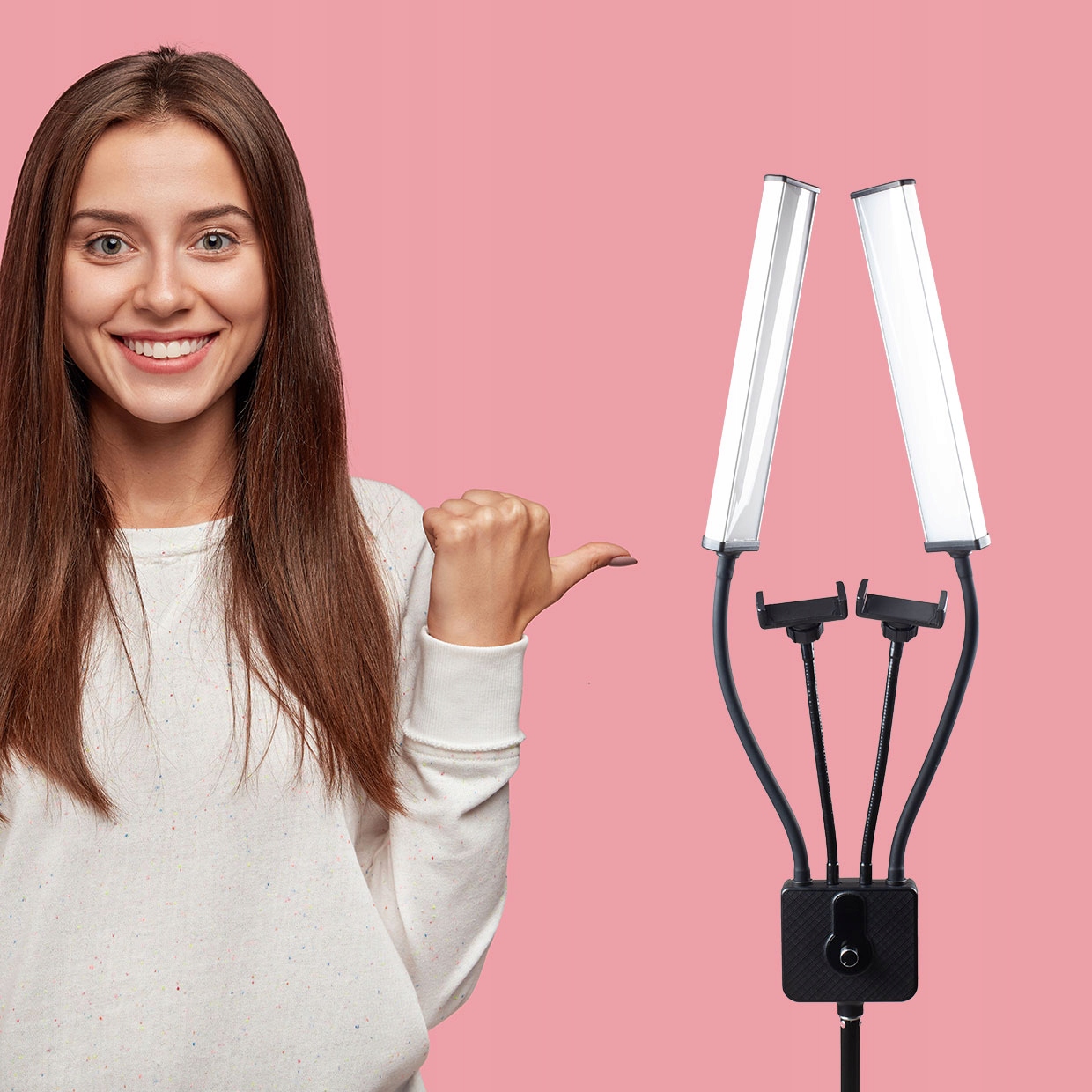 Двомодульна світлодіодна лампа краси з тримачем для телефону, штативом і сумкою