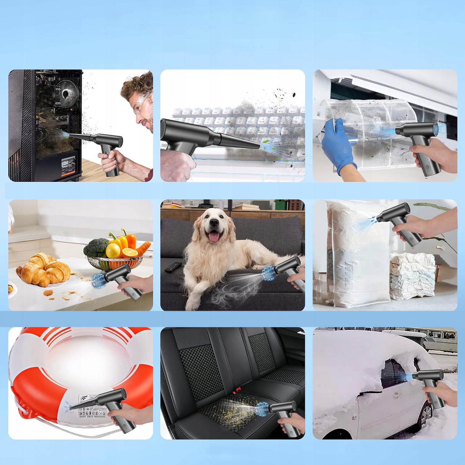 ▶️【 Багатофункціональний інструмент для чищення】 < /h1>- Електричний фен оснащений різними насадками та насадками-щітками, ідеально підходить для чищення клавіатур комп’ютерів, ноутбуків, фотоапаратів, принтерів, сидінь машини, дивани, столи та жалюзі. Він також може надувати кільця для плавання, надувні ліжка, рятувальні човни тощо.