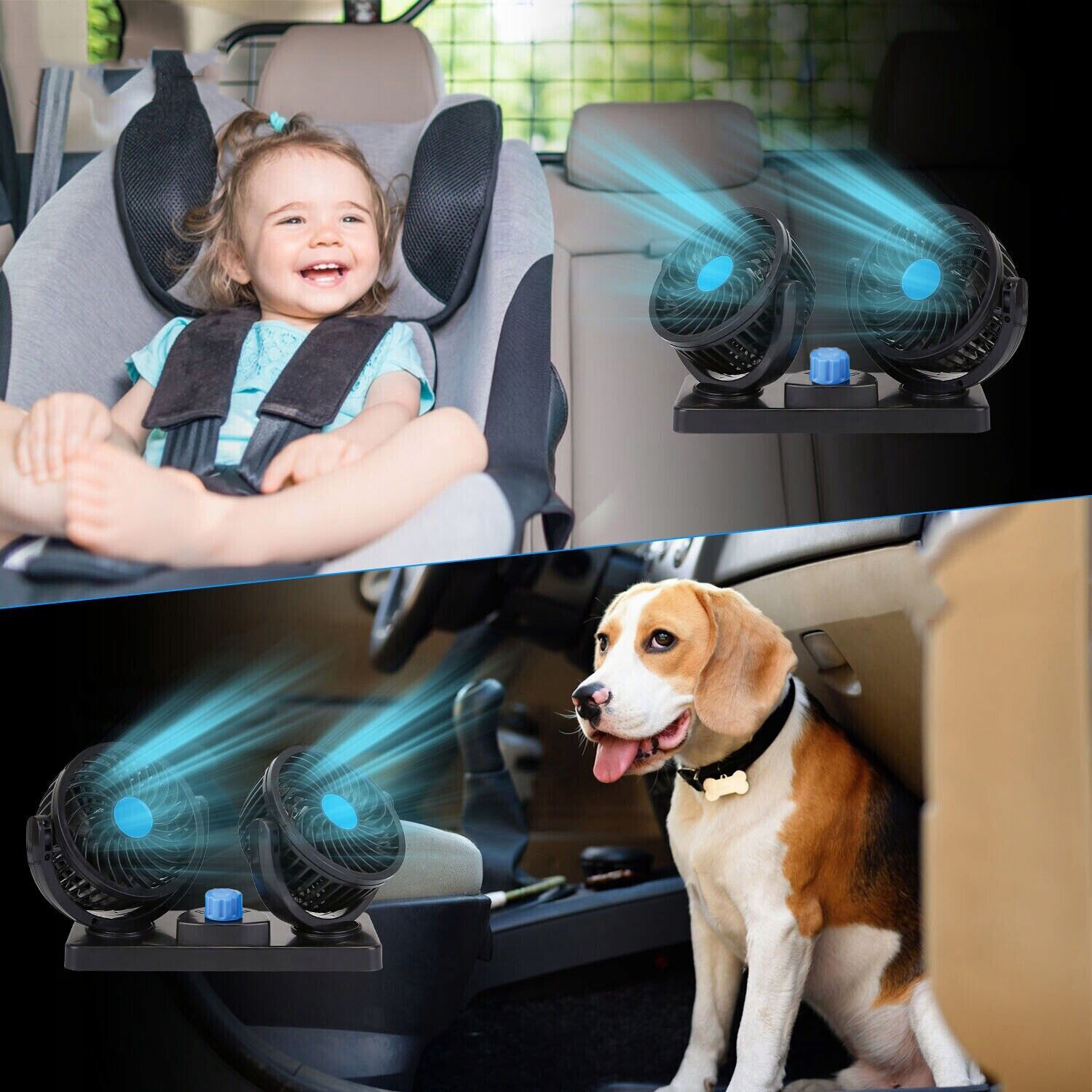 ПОТУЖНИЙ 360° РОТАЦІЙНИЙ ДВІЙНИЙ ВЕНТИЛЯТОР ДЛЯ АВТОМОБІЛЯ 12В