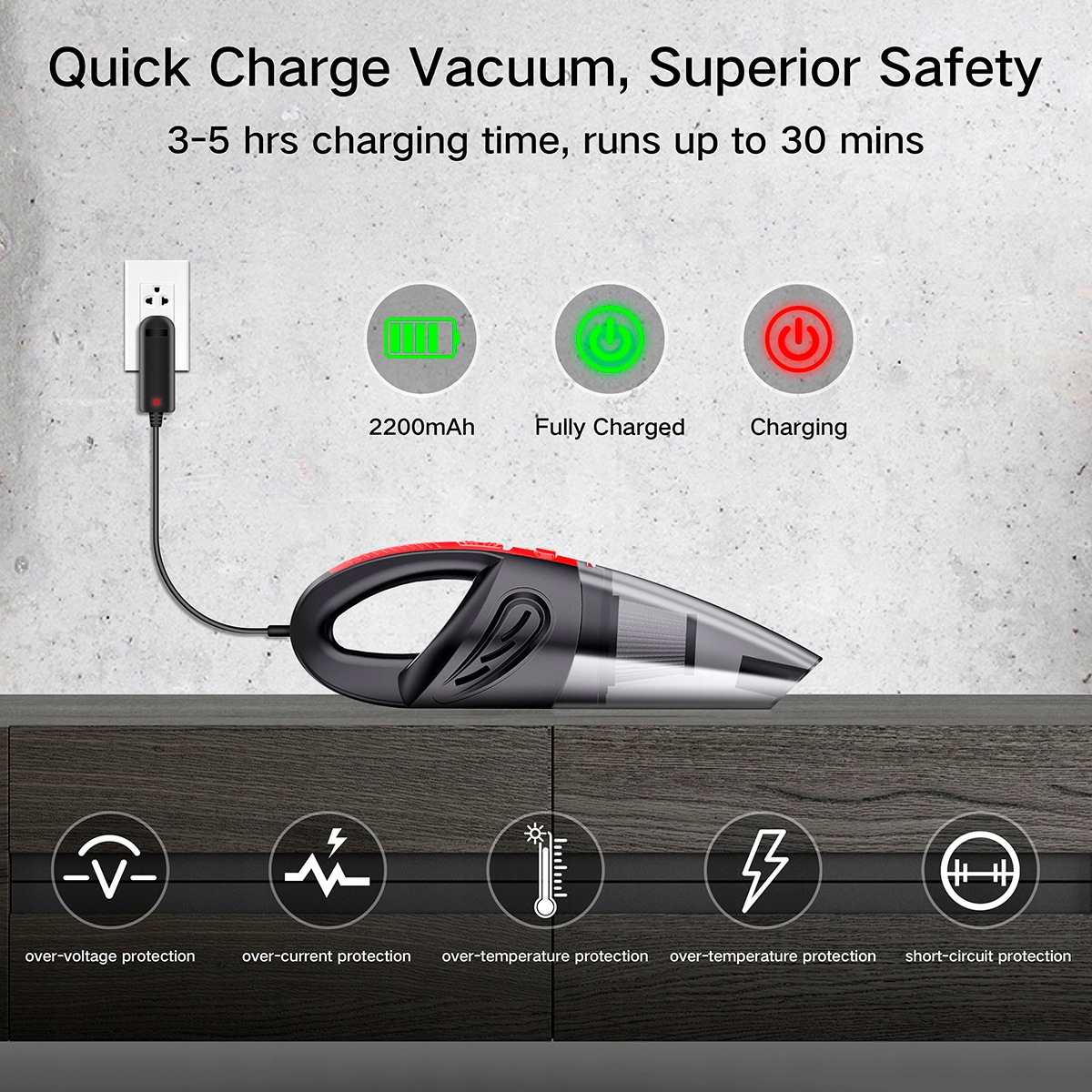 За допомогою цього фірмового ручного пилососа від AUDEW бруд видаляється миттєво. Постійно встановлений акумулятор на 2200 мАг із потужністю всмоктування 120 Вт, якого вистачає на 30 хвилин і не робить зручний пристрій для відсмоктування надмірно важким.