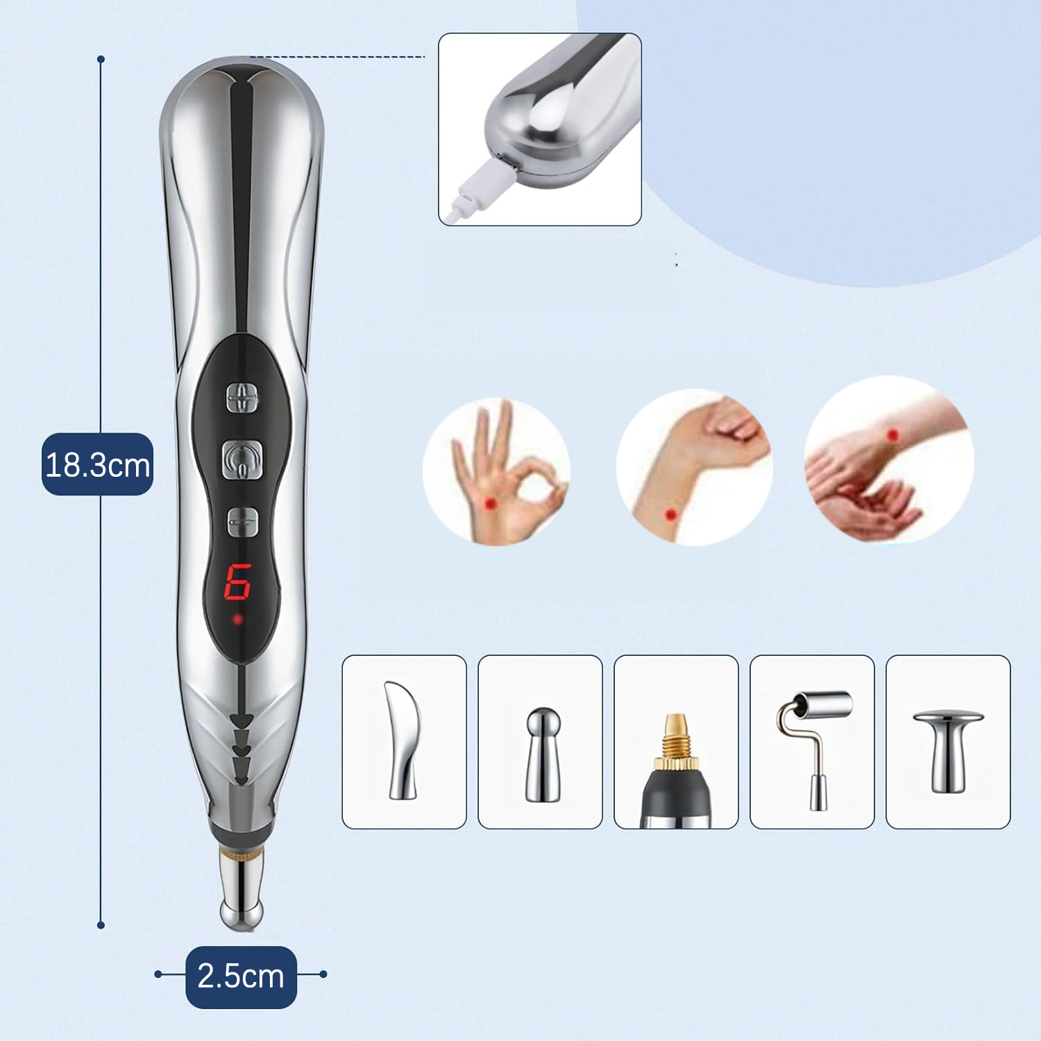 ✅ Акупунктура без голок: Електронна акупунктурна ручка 5 в 1 виконує простий масаж, не проколюючи шкіру. Просто натисніть на голки в потрібному місці, щоб стимулювати меридіани та точки акупунктури.