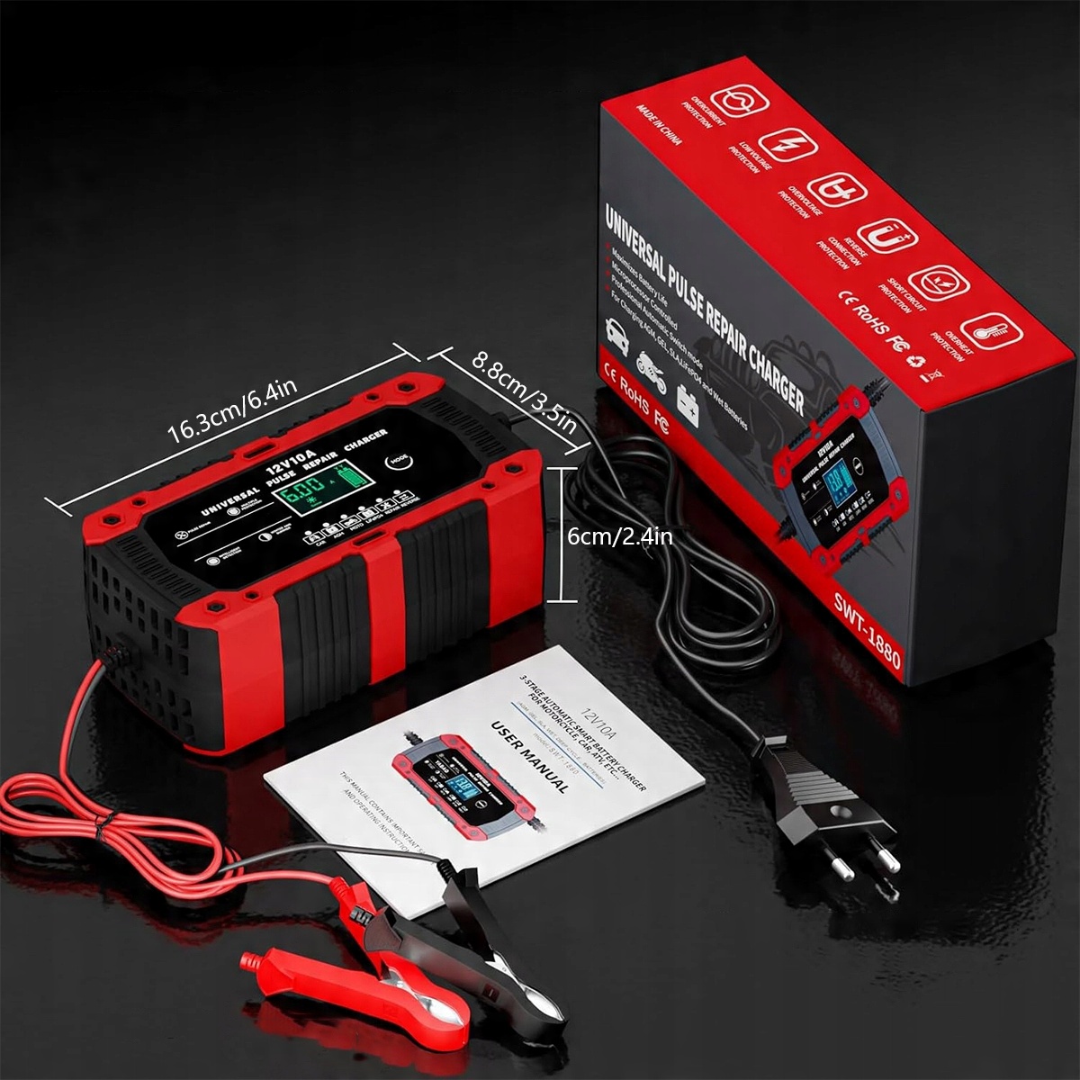 Автомобільний зарядний пристрій 12 В 10 А підходить для свинцево-кислотних і LiFePO4 акумуляторів, зарядна напруга яких становить від 14,2 до 14,9 В пост. найкращий вибір, якщо ви хочете подовжити термін служби свого автомобіля, вантажівки, мотоцикла, газонокосарки чи човна, оскільки зарядні пристрої для автомобільних акумуляторів легко справляються з різними умовами навколишнього середовища.