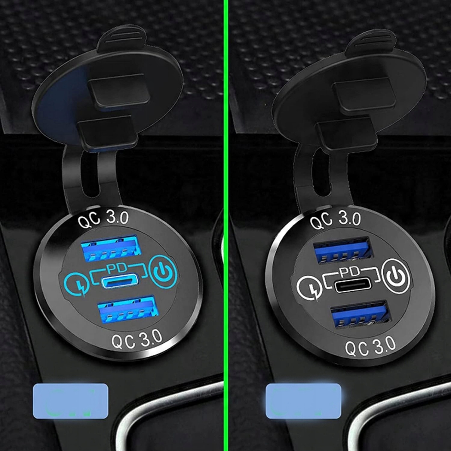 ПОТУЖНИЙ АВТОМОБІЛЬНИЙ ЗАРЯДНИЙ ПРИСТРІЙ USB ТИПУ C МОНТАЖНА РОЗЕТКА 2X QC 3.0 + PD