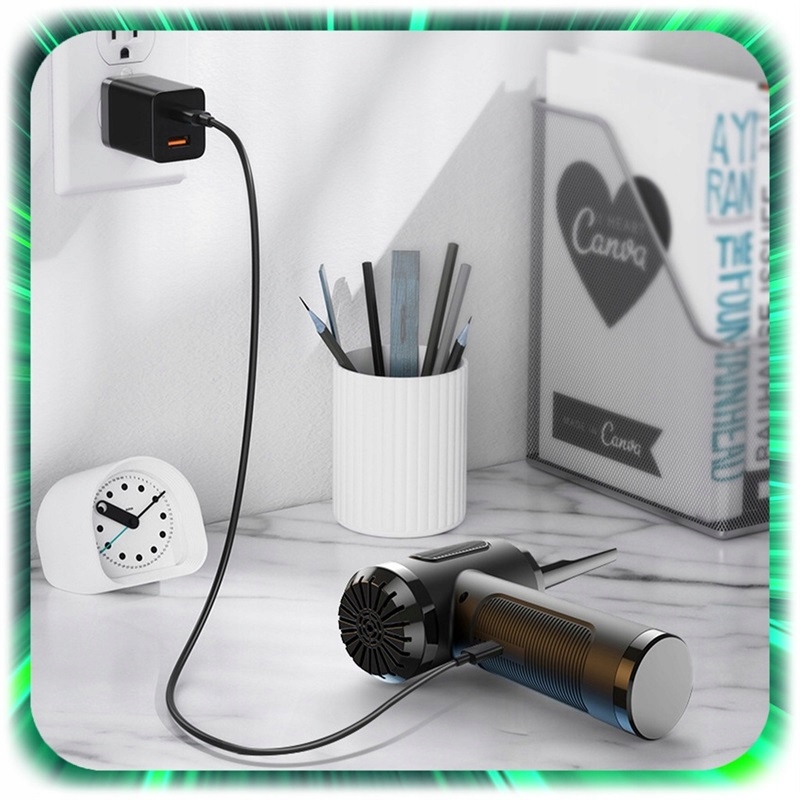 ⚠ завдяки великій акумуляторі потужністю 6000 мАг, повітродувка забезпечує до 40 хвилин безперервної роботи на одному заряді.