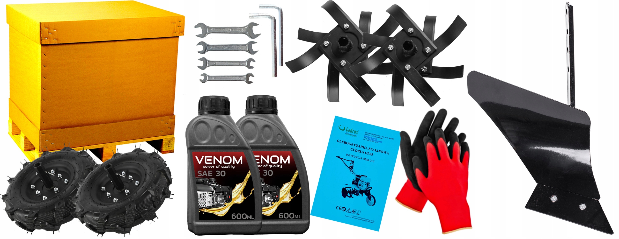 ⭐⭐⭐Мотофрези можна оснастити додатковими аксесуарами*, наприклад гребняками, плугами або металевими колесами. Додаткові аксесуари, безумовно, значно полегшують роботу з фрезою.