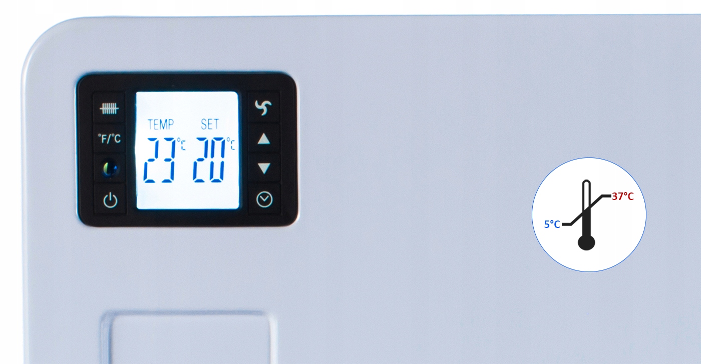 Просте перемикання потужності радіатора забезпечується однією кнопкою з панелі або пульта дистанційного керування.