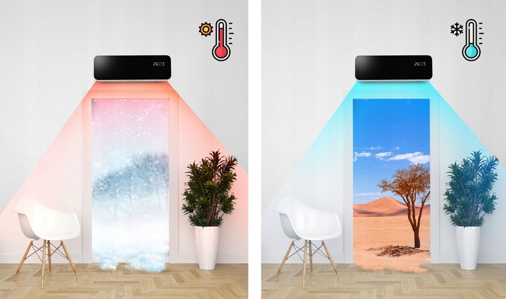 ✔ Влітку - коли в квартирі приємна прохолода а на вулиці гаряче повітря, завіса затримує нагріті повітряні маси. Потік прохолодного повітря створює захисний шар, завдяки якому тепло не проникає всередину.