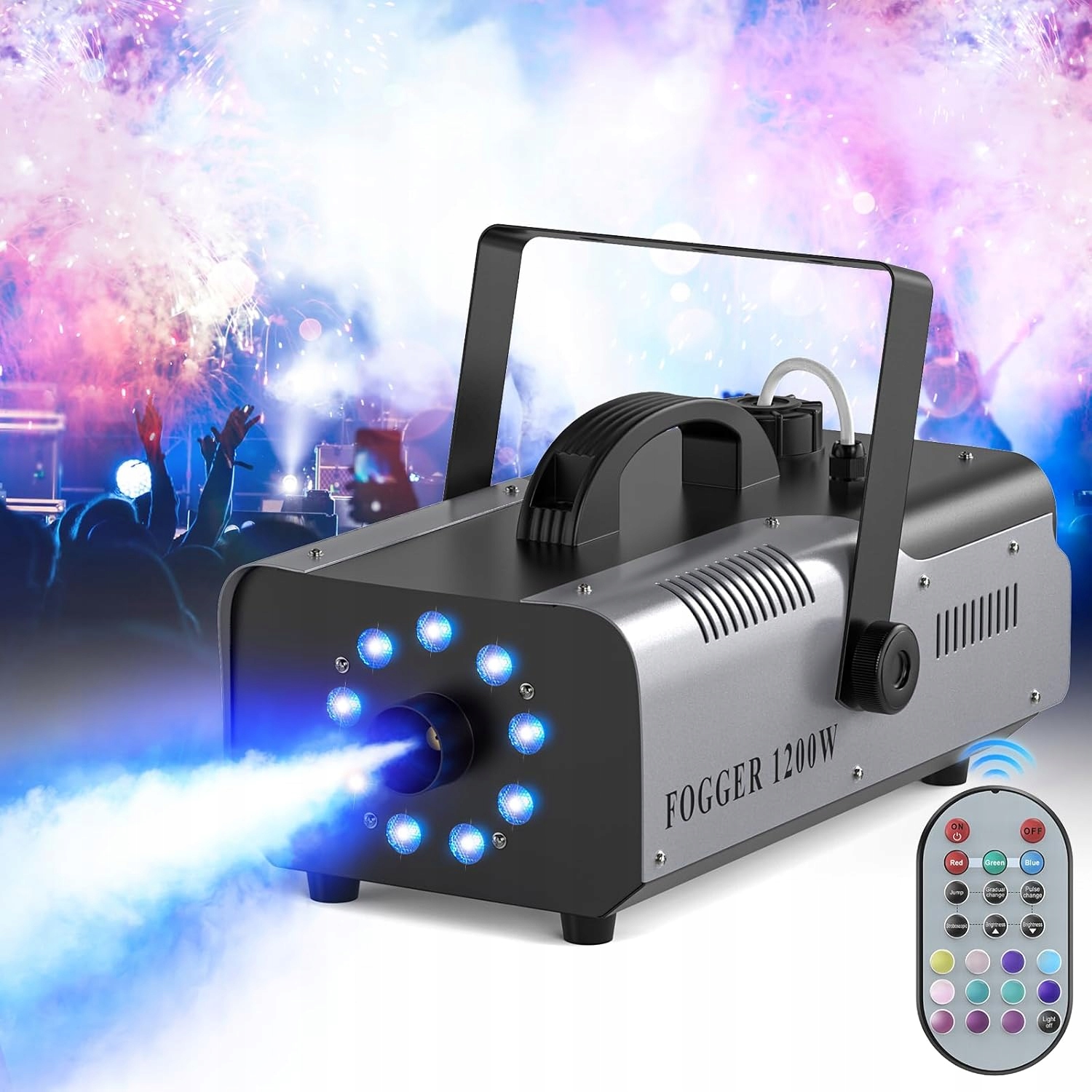 **Генератор туману з RGB-ефектами та дистанційним керуванням — ідеально підходить для створення унікальної атмосфери на весіллях, нічних клубах і вечірках.**