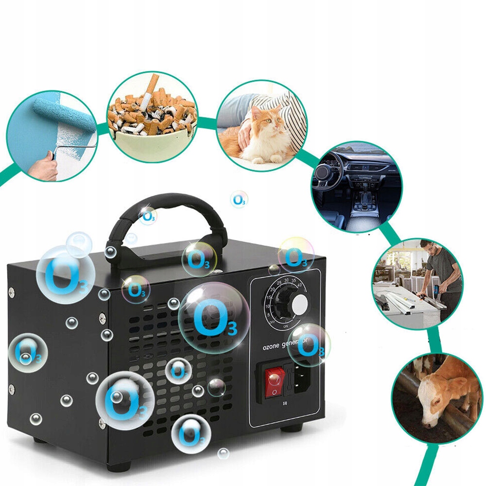 Генератор озону виробляє озон для очищення всього повітря. Він енергозберігаючий, безпечний, тихий і надзвичайно ефективний. Ідеально підходить для використання в приміщеннях, кімнатах для домашніх тварин із запахом, гаражах, фермах, місцях для куріння, транспортних засобах, готелях і ресторанах.