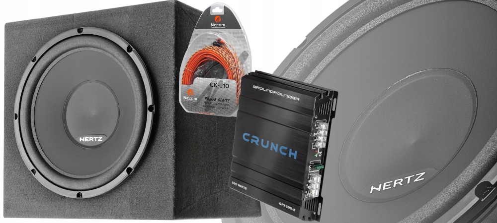ПОТУЖНИЙ БАС-БОКС З КАБЕЛЯМИ ПІДСИЛЮВАЧА HERTZ 1000 Вт