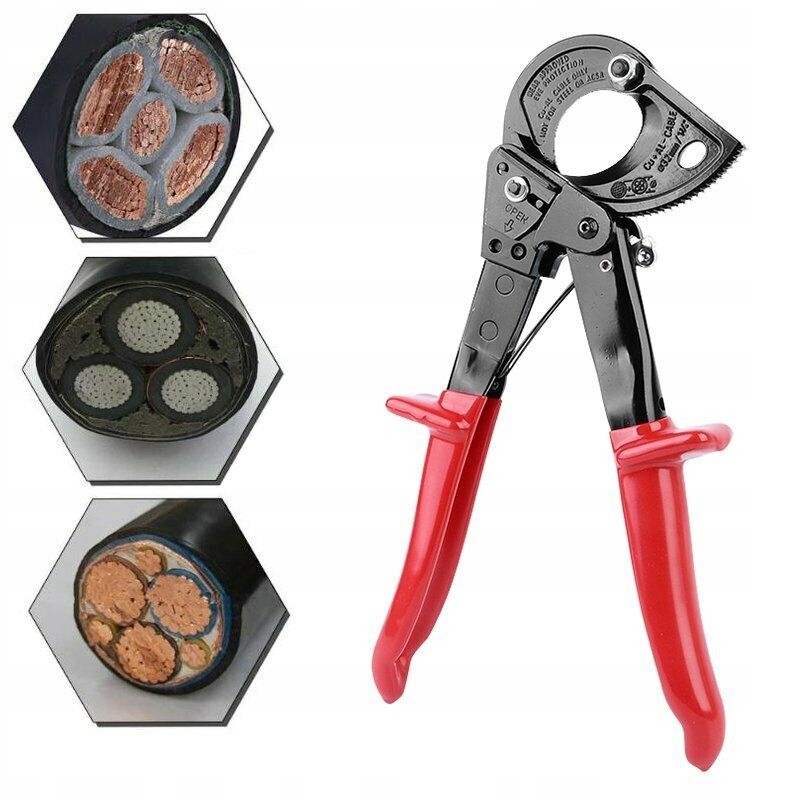 - * Кабельний різак із тріскачкою використовується для безпечного й точного різання кабелів.