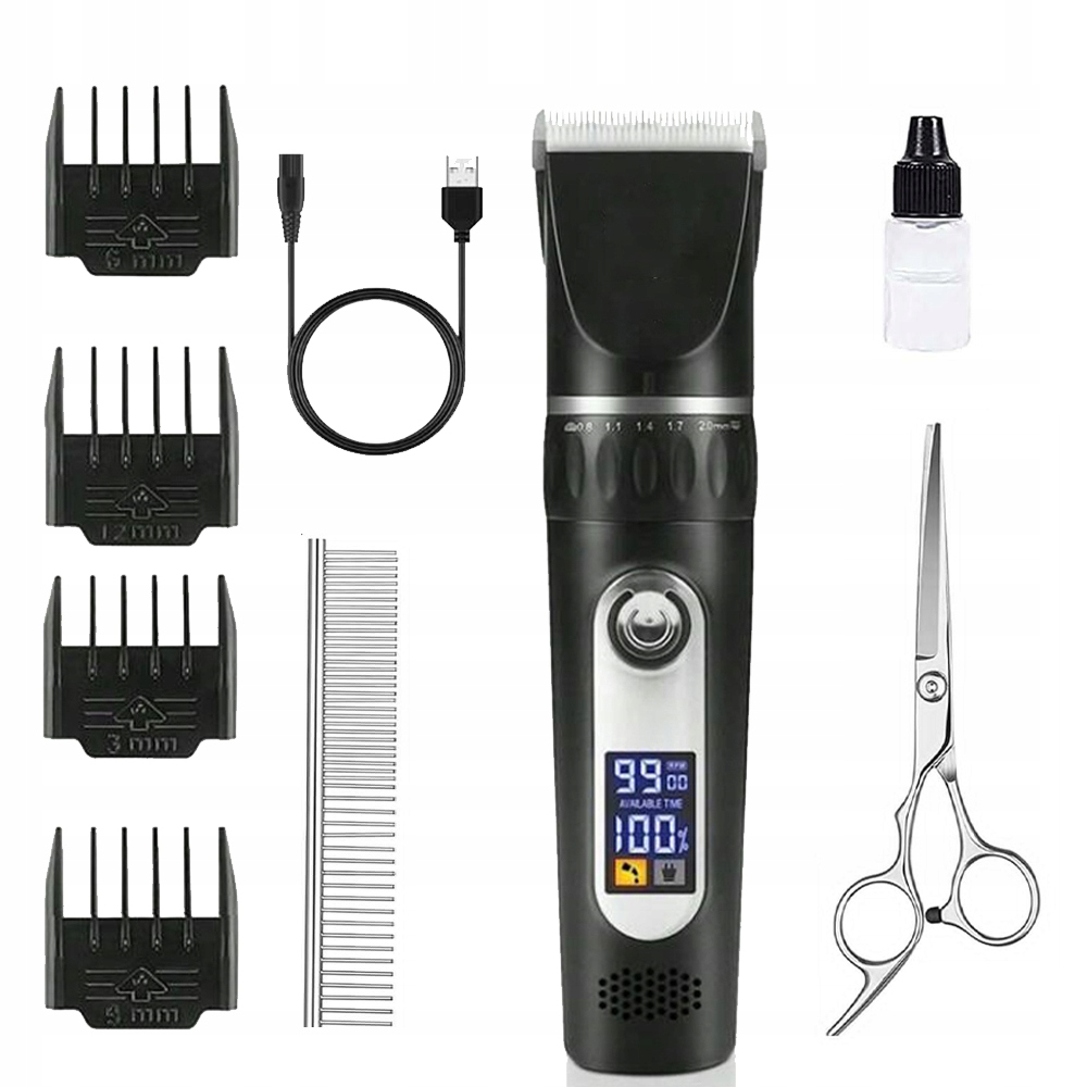 🐶 - Оснащений 4 довжинами(3/6/9/12 мм) насадок-гребінців, а ручка точного регулювання забезпечує п'ять довжин (0,8-2,0 мм), які можна точно відрегулювати відповідно до потреб вихованця довжина волосся.
