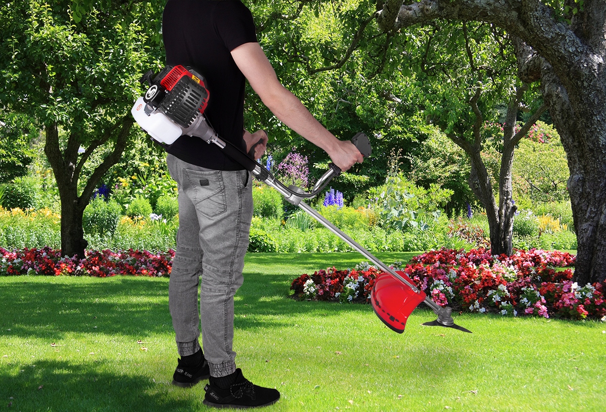 Простий у використанні та обслуговуванні, він є ідеальним рішенням для підстригання країв газону, прибирання та видалення сильних бур’янів на складній місцевості та скрізь, де бензинові газонокосарки досягають межі своїх можливостей (біля стін і будівель, видалення непотрібних чагарників і чагарників)