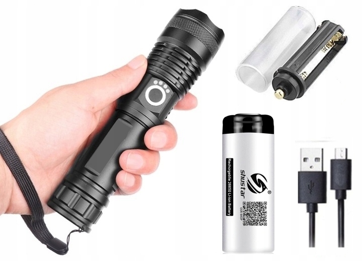 Потужний ліхтарик Cree XHP50 USB зарядка + aku 26650