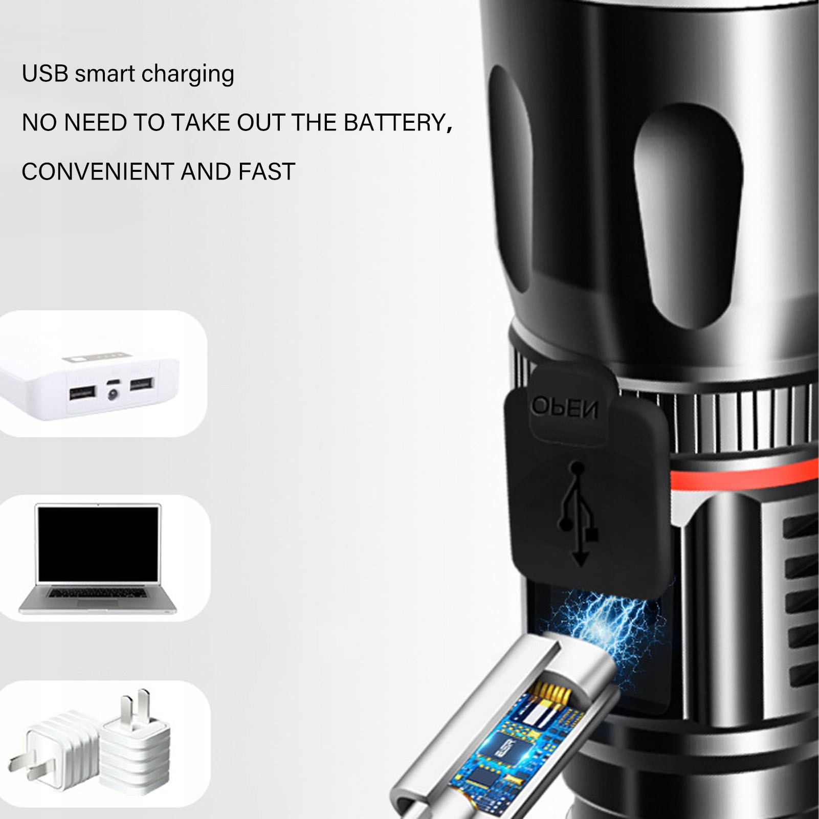 4. Заряджання через USB. Перезаряджуваний світлодіодний ліхтарик не сильно нагрівається після тривалого використання та може нормально використовуватися в суворих погодних умовах, таких як дощ і сніг.
