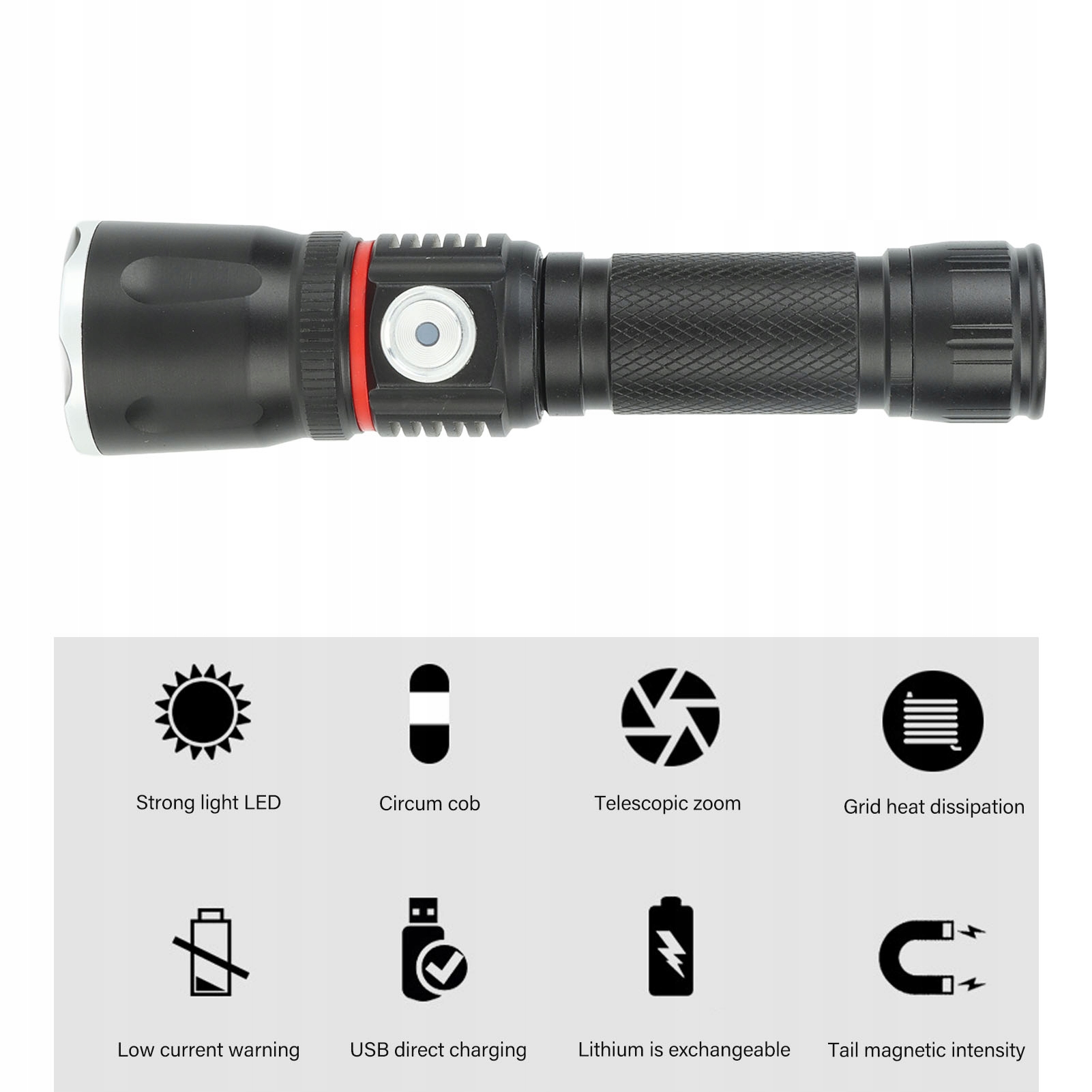 Потужний ліхтарик з алюмінієвого сплаву, акумуляторний світлодіод COB від USB, 8R