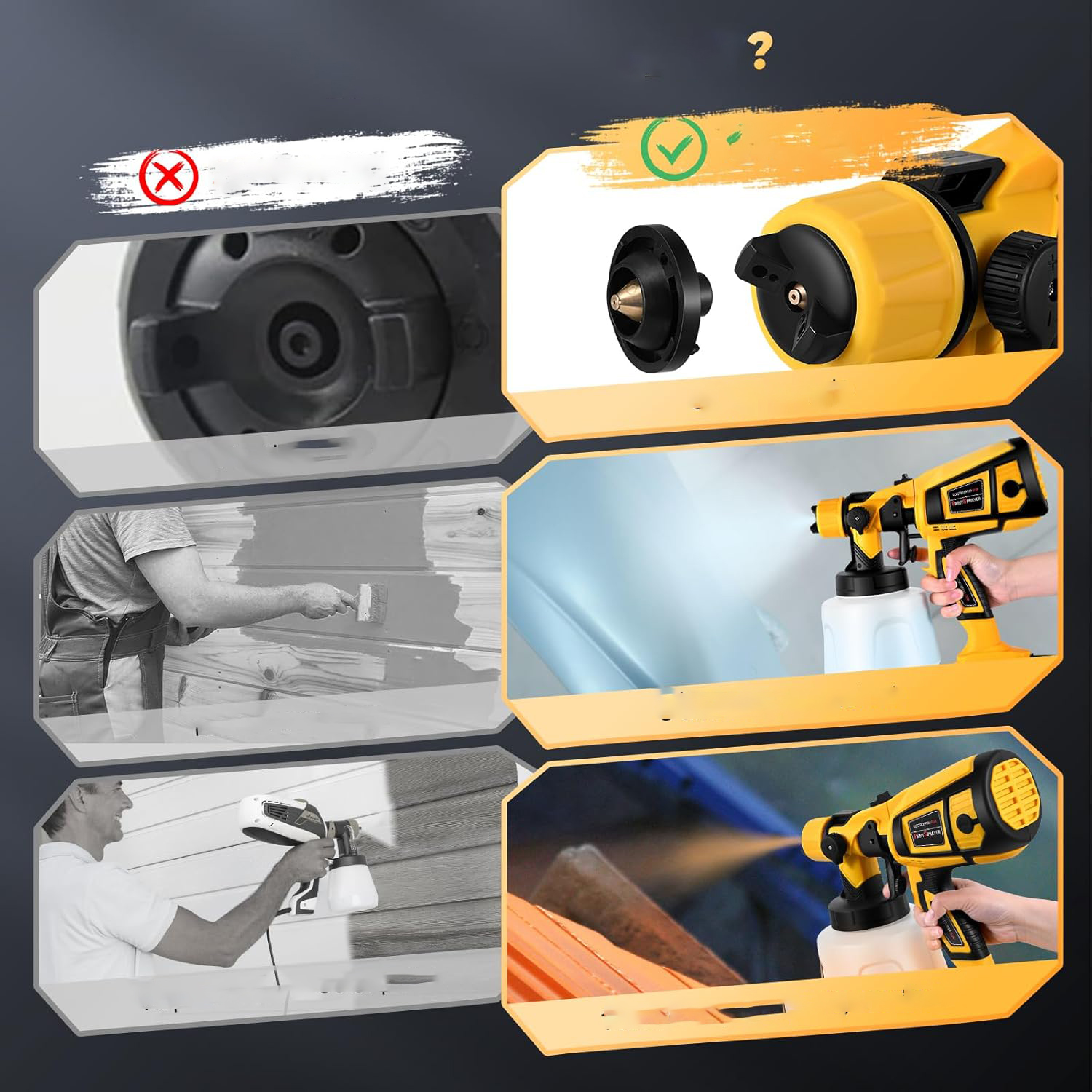 - 🌈Розпилювач для фарбування ідеально підходить для різноманітних проектів, має чотири розміри сопла для різних потреб, підходить для більшості фарб будинки завдань, три регульованих режими розпилення: горизонтальний, вертикальний і круговий
