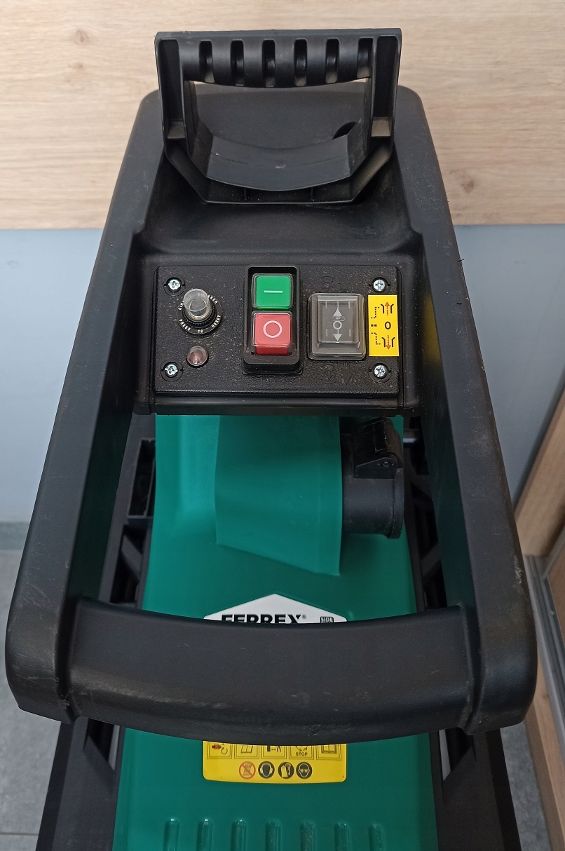 Електричний фрезерний подрібнювач FERREX 2800 Вт, модель GSR 2800. Завдяки високій потужності він дуже ефективно подрібнює гілки та збиває тріску. Максимальна товщина зрізаних гілок – 45 мм. Це дійсно сильно. Він має задню передачу та запобіжник від перевантаження.