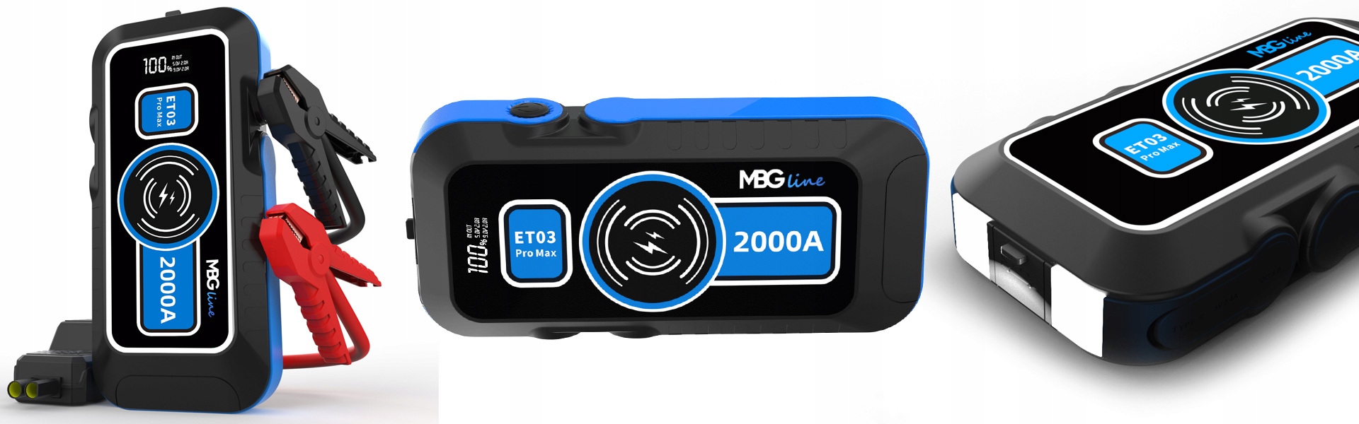 Jump Starter MBG Line ET03 Pro Max — це не лише портативний акумулятор, але й пристрій, готовий завести автомобіль у разі поломки. Він живиться від виходів EC5 з напругою 12 В і потужним пусковим струмом 800 А з максимальним струмом 2000 А, що дозволяє запускати бензинові двигуни з об’ємом менше 6,0 л (6000 см3) і дизельні двигуни з об’ємом менше 4,0 л (4000 см3).