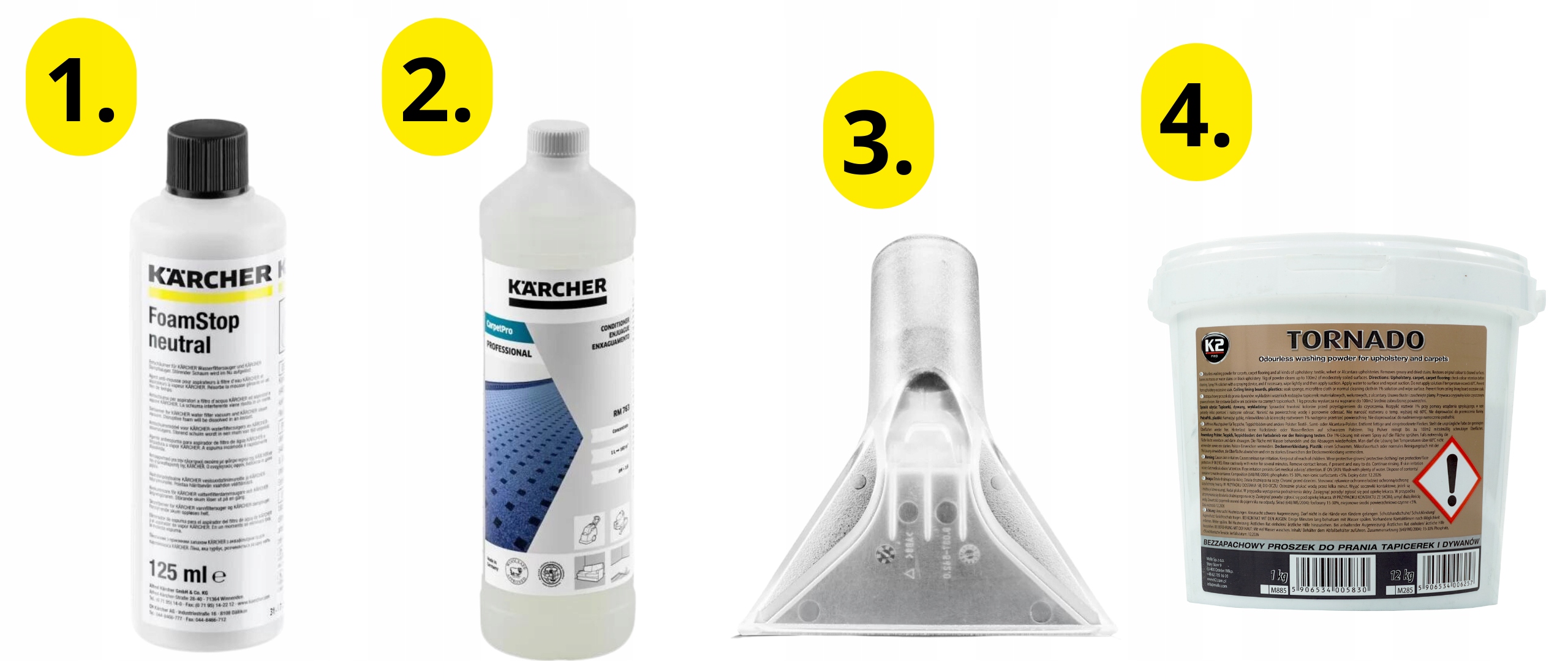 Килим і порошок для прання оббивки K2 Tornado b> ідеально підходить для регулярного використання в ательє деталінгу, транспортних компаніях, підприємствах, що ведуть діяльність на основі професійного клінінгу та чищення елементів оббивки, а також для використання власниками легкових автомобілів.