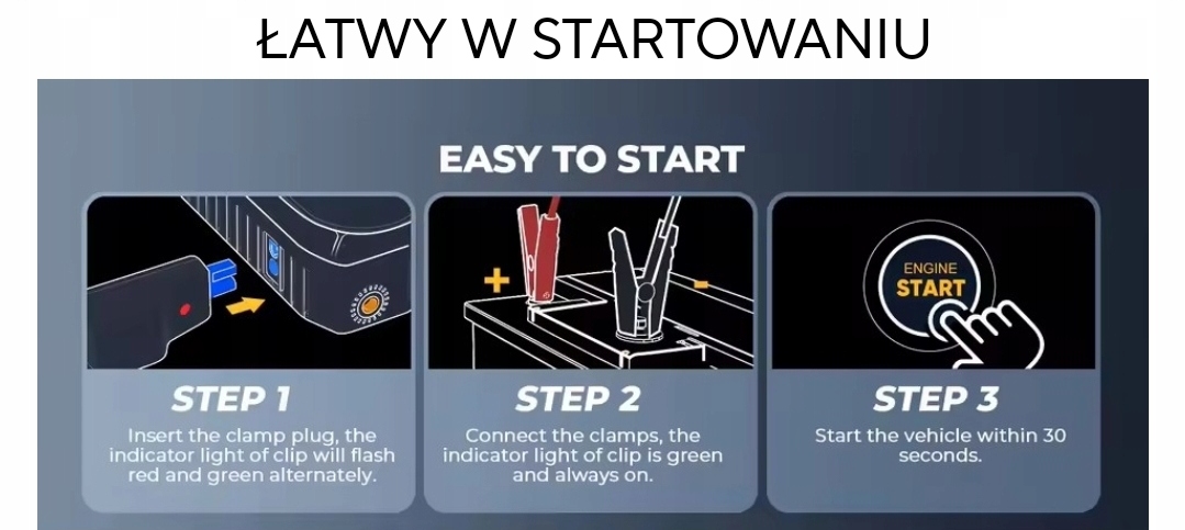 ✅ Кабелі мають ряд засобів захисту, які роблять керування пристроєм простим і безпечним. Крім того, вони оснащені кнопкою примусового запуску, яка корисна в ситуаціях, коли акумулятор сильно розряджений і стандартний режим запуску не вдається.