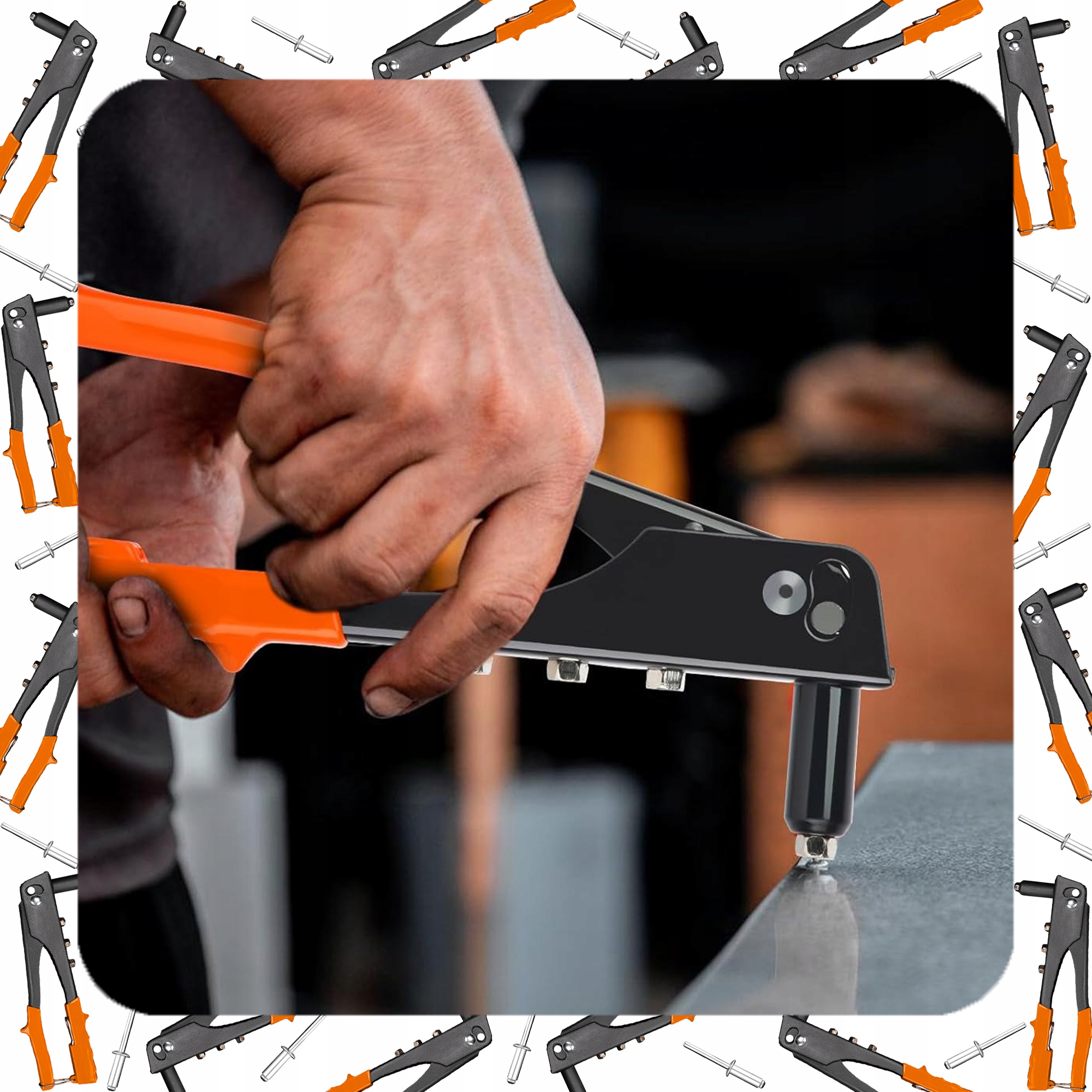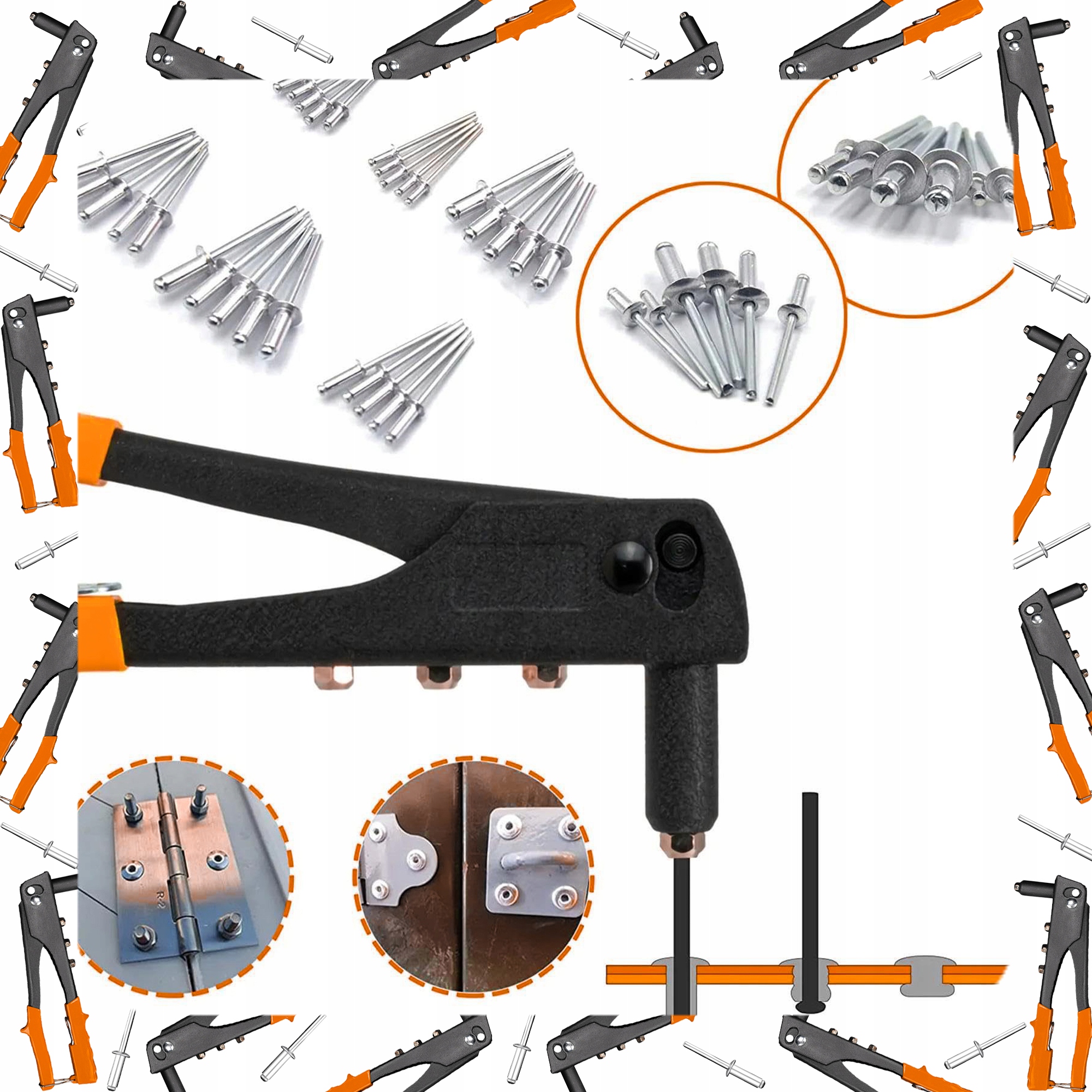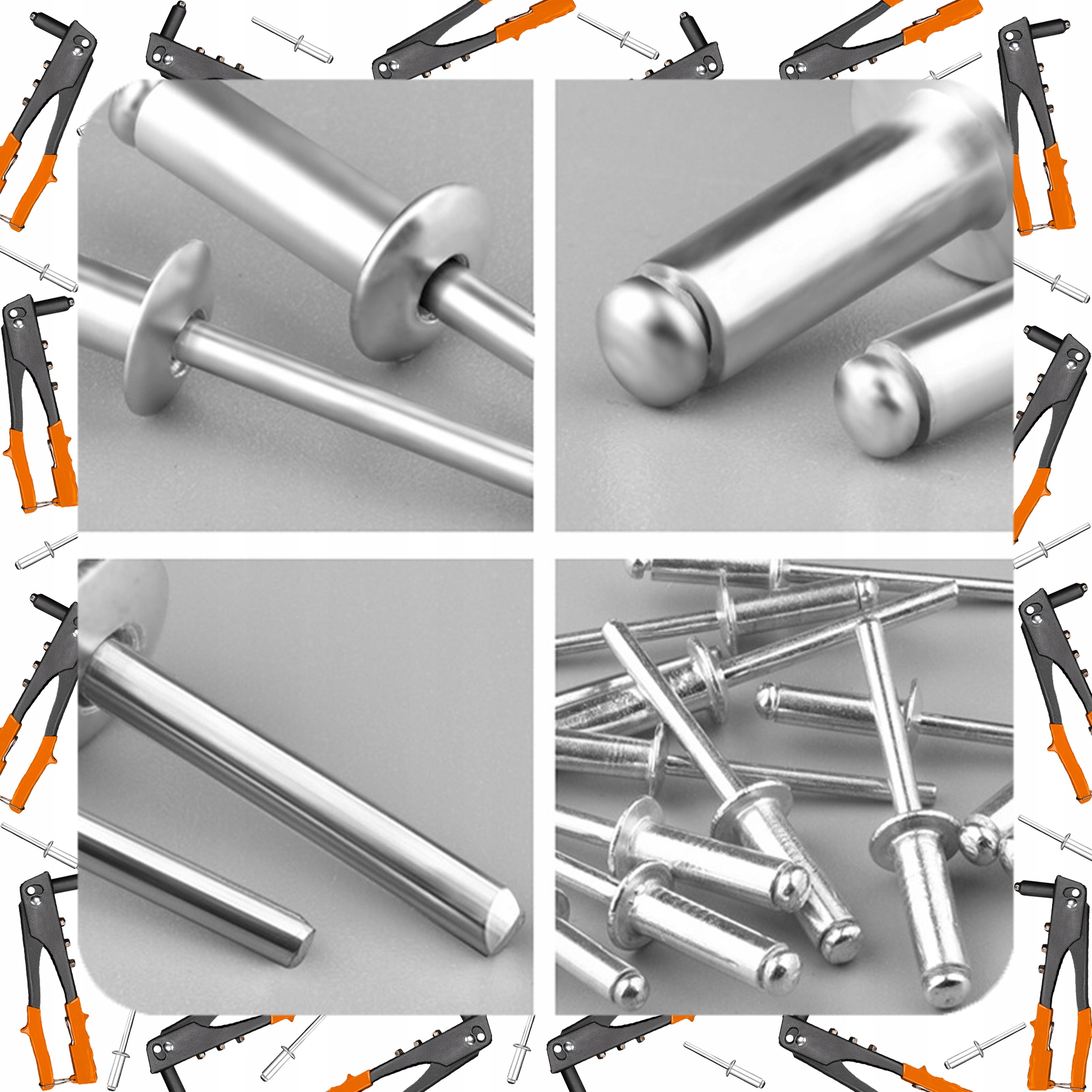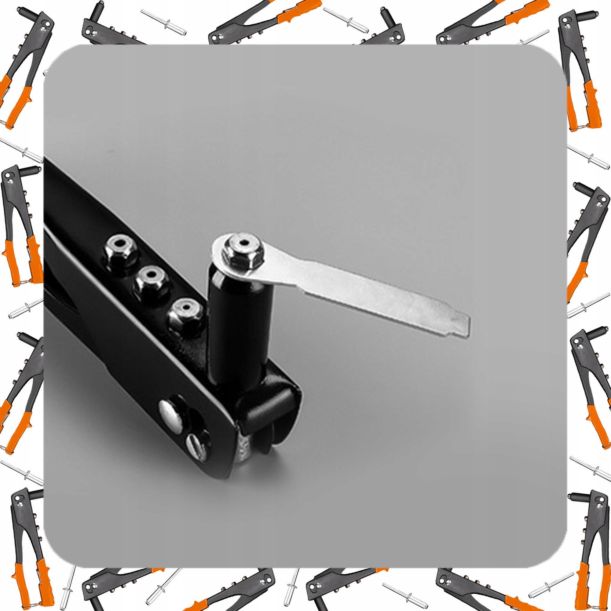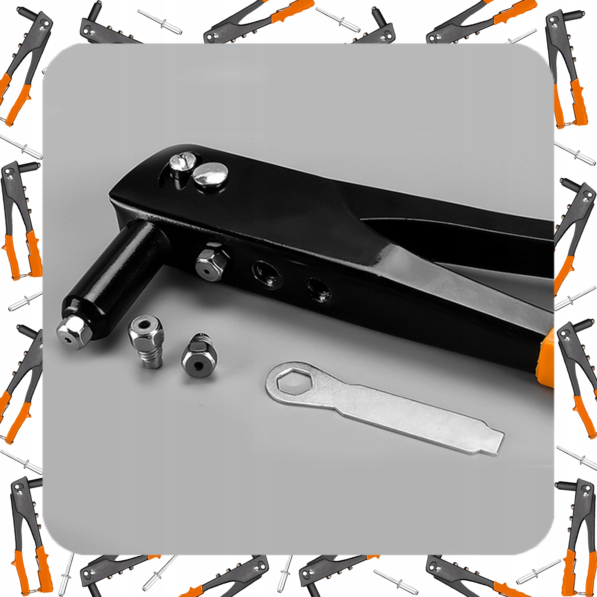 ПОТУЖНИЙ РУЧНИЙ КЛЕПАЛЬНИК + 100 x СТАНДАРТНІ ЗАКЛЕПКИ, 4 НАСАДКИ КЛЮЧ