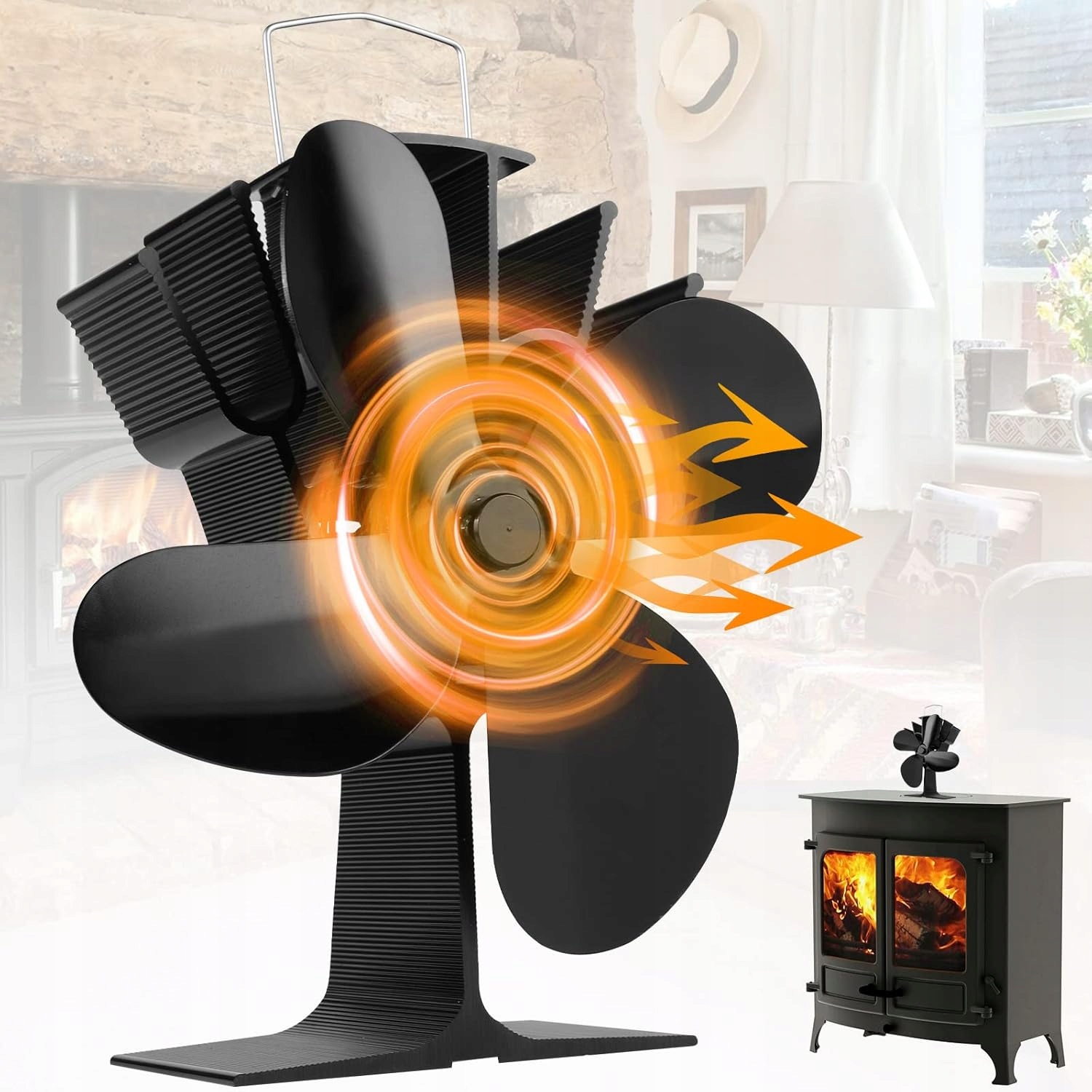 - ⚙️Просте встановлення та експлуатація; просто розмістіть вентилятор на гладкій, плоскій поверхні печі, збоку або ззаду від димоходу.