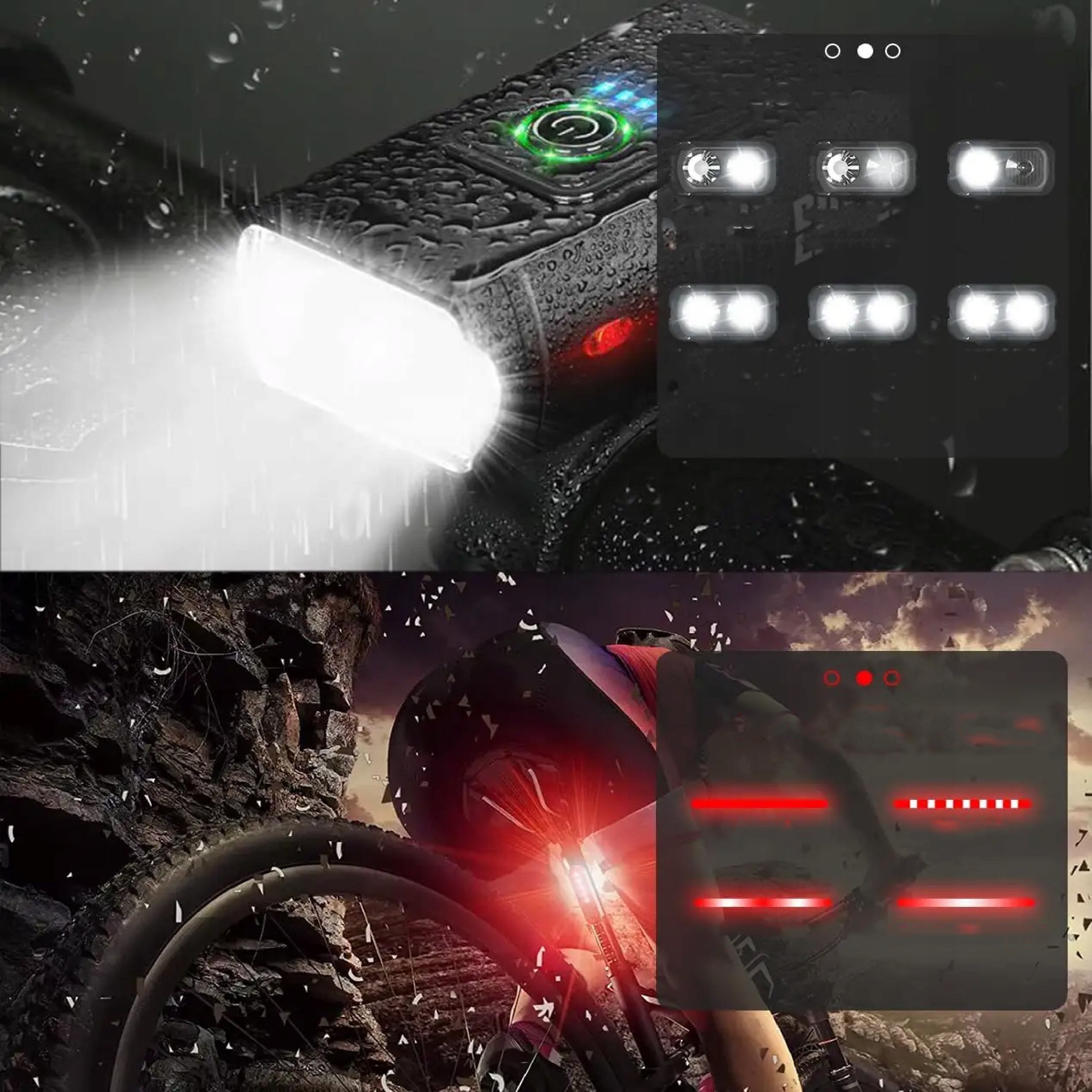Набір велосипедних ліхтарів, що складається з переднього та заднього ліхтаря, які живляться від порту USB. Передня лампа виготовлена з високоякісного металу. Обидві лампи мають ступінь захисту IPX4, що означає, що вони захищені від бризок і погодних умов. І передні, і задні ліхтарі оснащені трьома режимами освітлення. Обидва ліхтарі маютьфункцію заряджання через USB-порт, що дозволяє швидко та легко заряджати акумулятор.