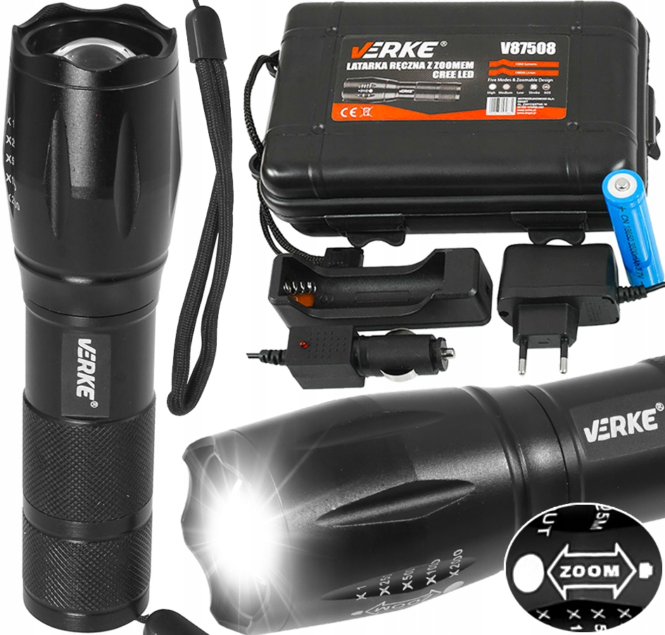 Універсальний ліхтарик з інтенсивністю світла 1000 люмен і живленням від літій-іонного акумулятора 18650 ємністю 3500 мАг, взаємозамінними тонкими пальцями 3x1,5V/AAA. Ліхтарик оснащений дуже яскравим діодом Cree XML-T6, який забезпечує більше світла, зберігаючи тривалий час горіння. Ліхтарик має 5 режимів роботи: 100%, 50%, 25%, спалахування і SOS, лінзу, яка генерує рівномірний потік світла і можливість плавного регулювання фокусу світлового променя. Корпус ліхтаря виготовлений з аероалюмінію 6063 на верстаті з ЧПУ. Поверхня піддається зносостійкому процесу анодного окислення.