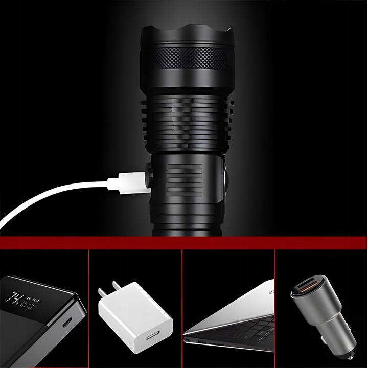 ПОТУЖНИЙ СВІТЛОДІОДНИЙ ТАКТИЧНИЙ ЛІХТАРИК XHP90 ZOOM ВІЙСЬКОВИЙ ВОДОНЕПРОНИЧНИЙ ЧОХОЛ АКУМУЛЯТОРА