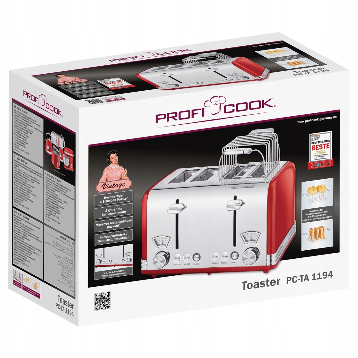 Розпочніть день комфортно зі своїми близькими: з PC-TA 1994 від ProfiCook ви отримаєте високоякісний тостер на 4 скибочки з нержавіючої сталі з 2 елементами керування.