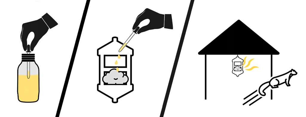 Рідина ефективно відлякує куниць. Його можна використовувати всередині приміщень, транспортних засобів і на відкритих майданчиках. За сприятливих погодних умов діє до 8 тижнів.