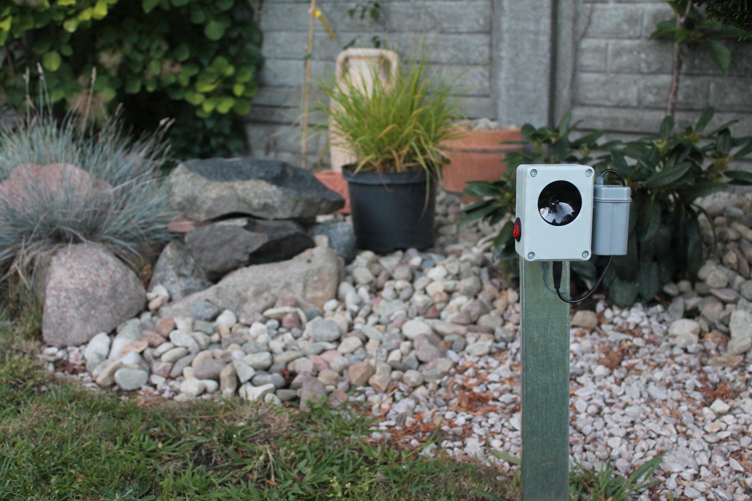 Ви можете легко підключити до відлякувачу блок живлення 230 В, а при бажанні також легко підключити додатковий акумуляторний блок живлення. Таким чином, ви можете використовувати відлякувач де завгодно - вдома або на природі, де є мережа 230В або взагалі немає електрики. Просто підключіть джерело живлення від батареї. Це займе всього кілька секунд. Енергоспоживання мінімальне, тому батареї вистачить на кілька тижнів 24-годинної роботи.