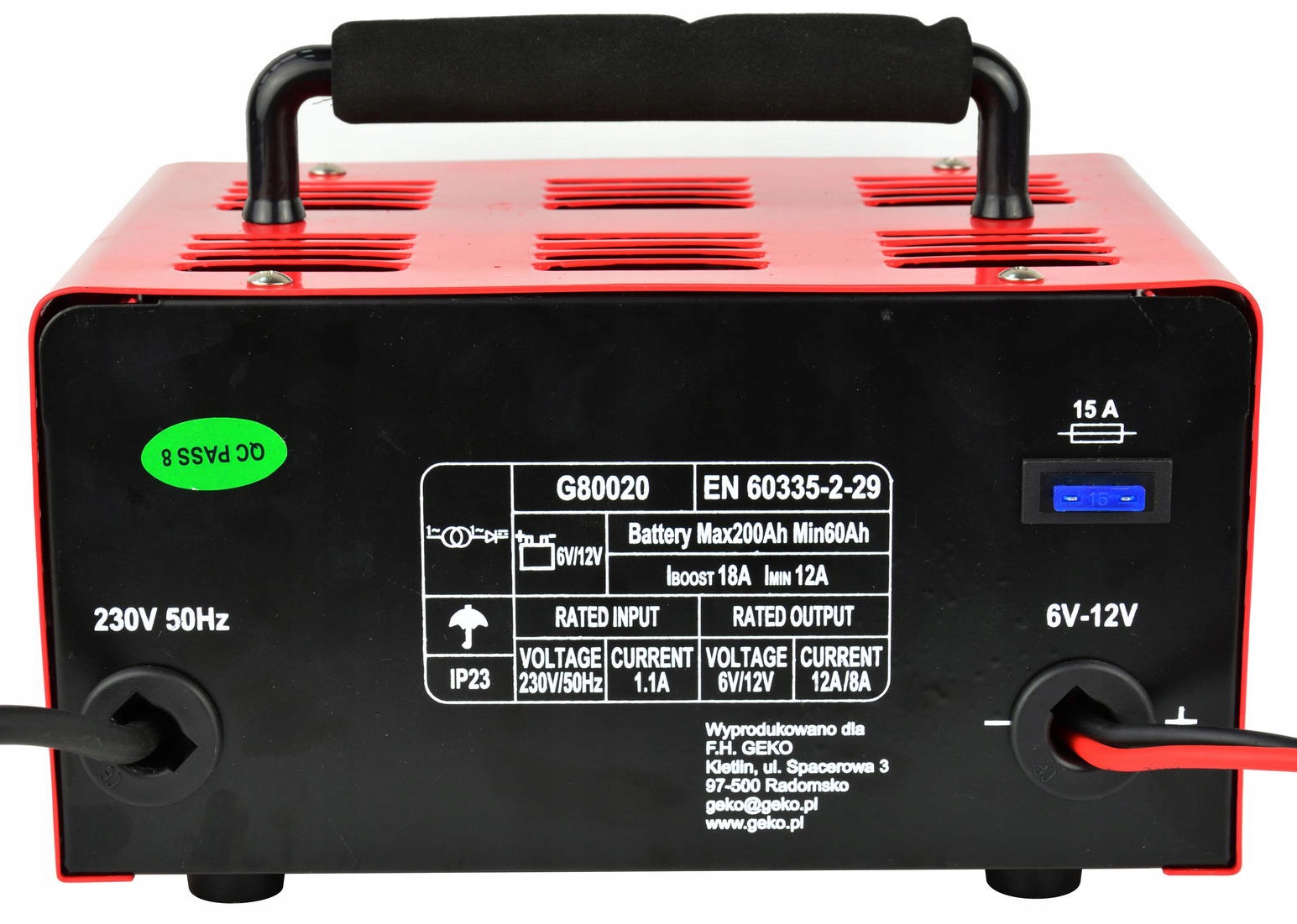Пусковий випрямляч GEKO, призначений для запуску та заряджання свинцево-кислотних акумуляторів з напругою 6 В або 12 В, використовується, серед іншого, в легкових автомобілях, мотоциклах, човнах ... а також для запуску двигунів внутрішнього згоряння у випадку повністю розрядженого акумулятора або дуже низьких температур навколишнього середовища.