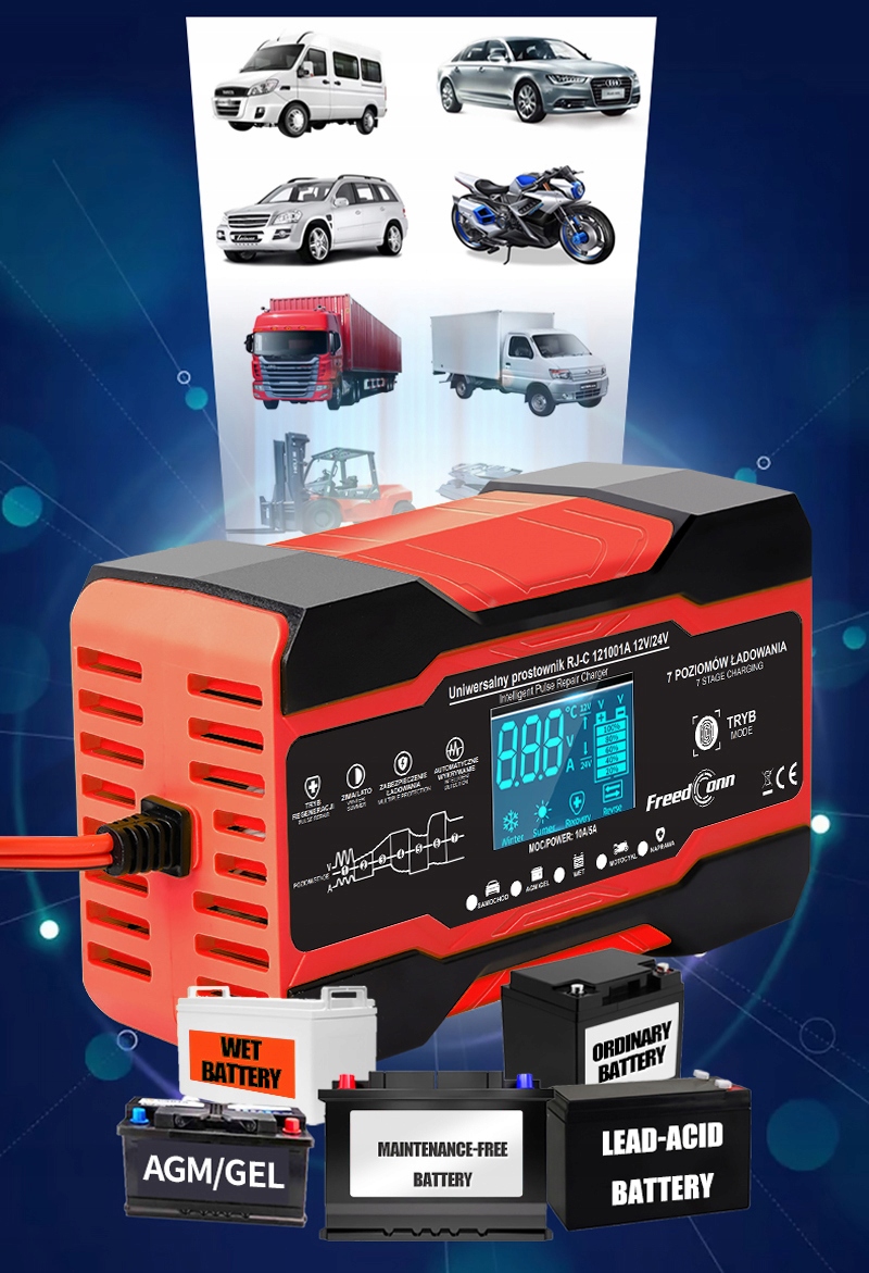 Спеціалізований зарядний пристрій, оптимізований для заряджання акумуляторів за допомогою системи Start & Stop, яка все частіше зустрічається в нових автомобілях. З одного боку, ця система забезпечує багато переваг, наприклад, мінімізує викиди вихлопних газів, але з іншого боку, вона дуже інтенсивно використовує акумулятор. За допомогою випрямляча FreedConn ви також можете заряджати акумулятор, який використовується в системі Start & Stop.