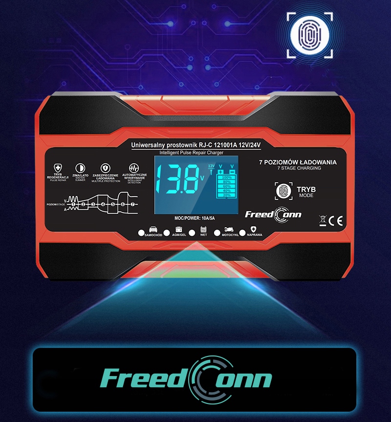 Випрямляч FreedConn виготовлено з високоякісних матеріалів, що робить його міцним і довговічним. Застосовані струмовий і тепловий захист підвищують безпеку використання зарядного пристрою, а функція регенерації акумулятора дозволяє продовжити термін його служби.