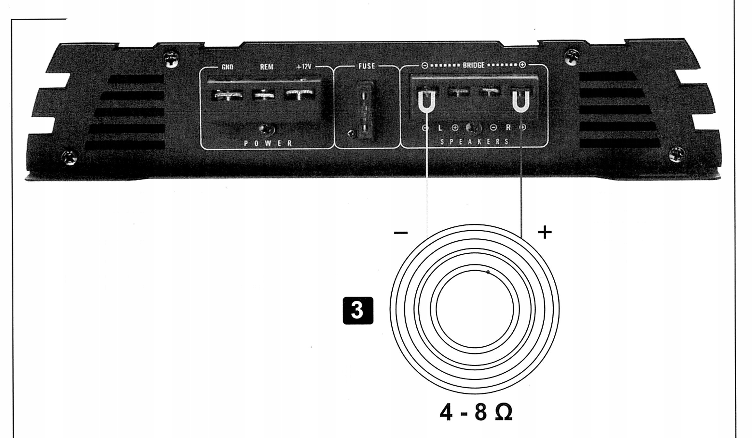 Підсилювач має можливість перемикання, тобто поєднання потужності лівого та правого каналів для живлення одного низькочастотного динаміка. Вбудований кросовер низьких частот дозволяє правильно налаштувати частотну характеристику, щоб сабвуфер отримував звук із відповідною частотною характеристикою.