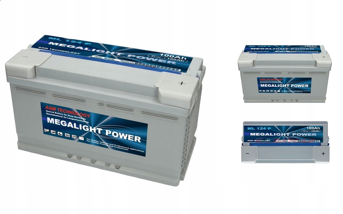 Акумулятори MEGALIGHT POWER з абсорбуючим скломатом AGM (Absorbent Glass Material) виготовлені за передовою технологією і призначені для пристроїв, в яких батарея глибоко розряджена.