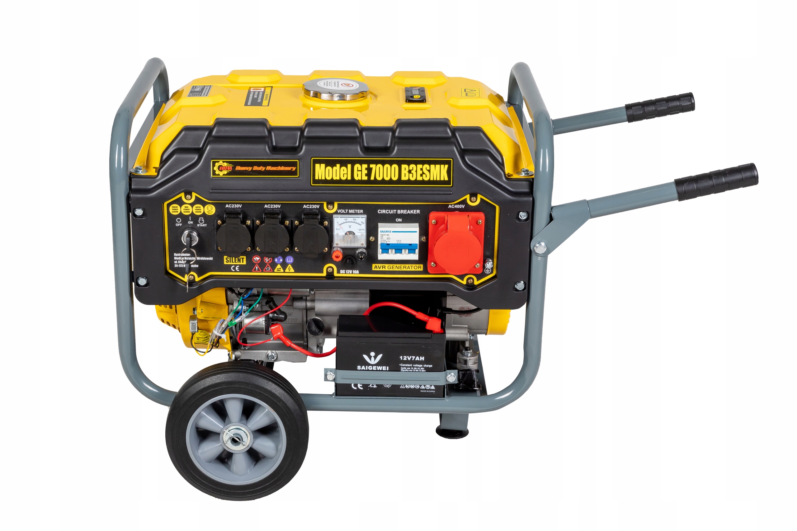 Оригінальний 4-тактний генератор від HDM, модель GE7000 B3ESMK, з двигуном OHV 7HP японського дизайну, ОБЛАДНАНИЙ ЕЛЕКТРОЗАПУСКОМ, РУЧКАМИ ТА КОЛЕСАМИ.