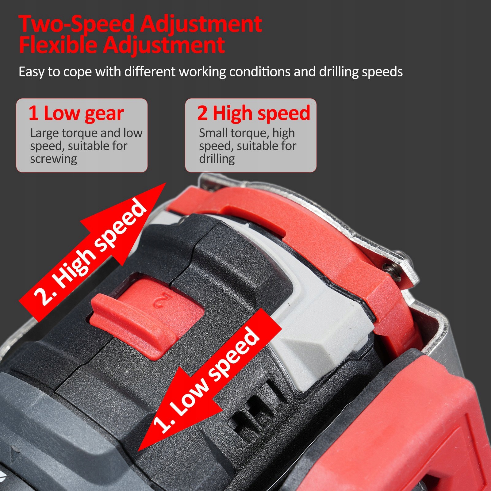 2. 【Двошвидкісна економія часу\U0026 потужність】Безщіточна літієва електрична дриль забезпечує 2-швидкісну трансмісію (0-500 об/хв\U0026 0-2000 об/хв), одну для створення вишуканих об’єктів з меншими витратами часу, а іншу — для довговічних проектів. Оснащений режимом роботи 2 в 1, загвинчуванням і свердлінням.