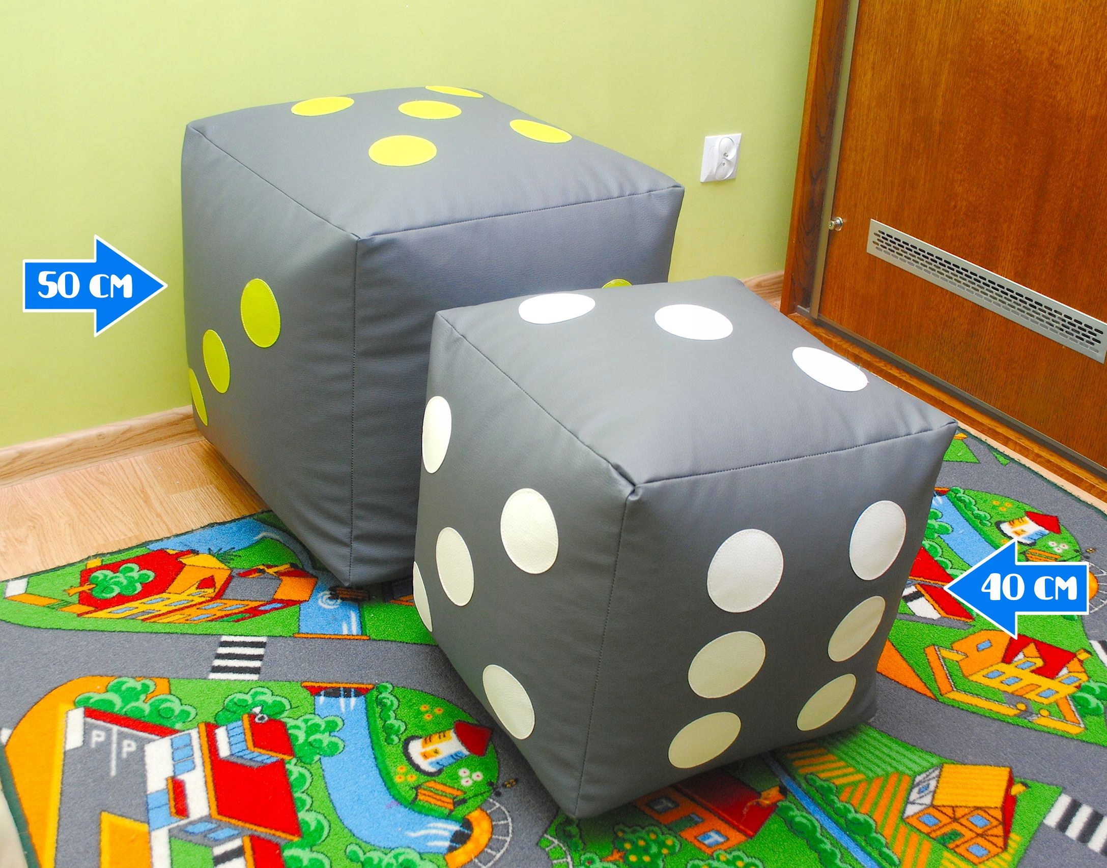 Наші кубики мають багато додатків - ви можете сидіти на них, вони також чудові як підніжки. POUF успішно використовуються в різних видах навчальних закладів, бібліотек, дитячих садків, спортивних центрів та культурних центрів. Вони ідеальні як елемент декору кімнати, вітальні, балконів або консерваторії. Дуже низька вага та використання відповідних матеріалів Забезпечення зручності у користуванні наймолодшим.