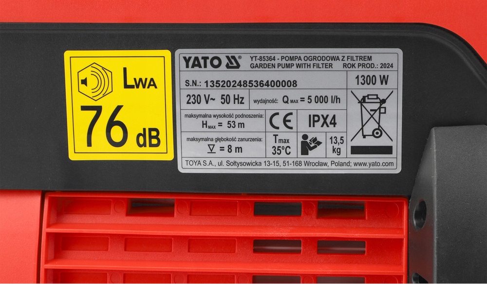 - Застосування: для перекачування чистої води для використання в саду, напр. зрошення.