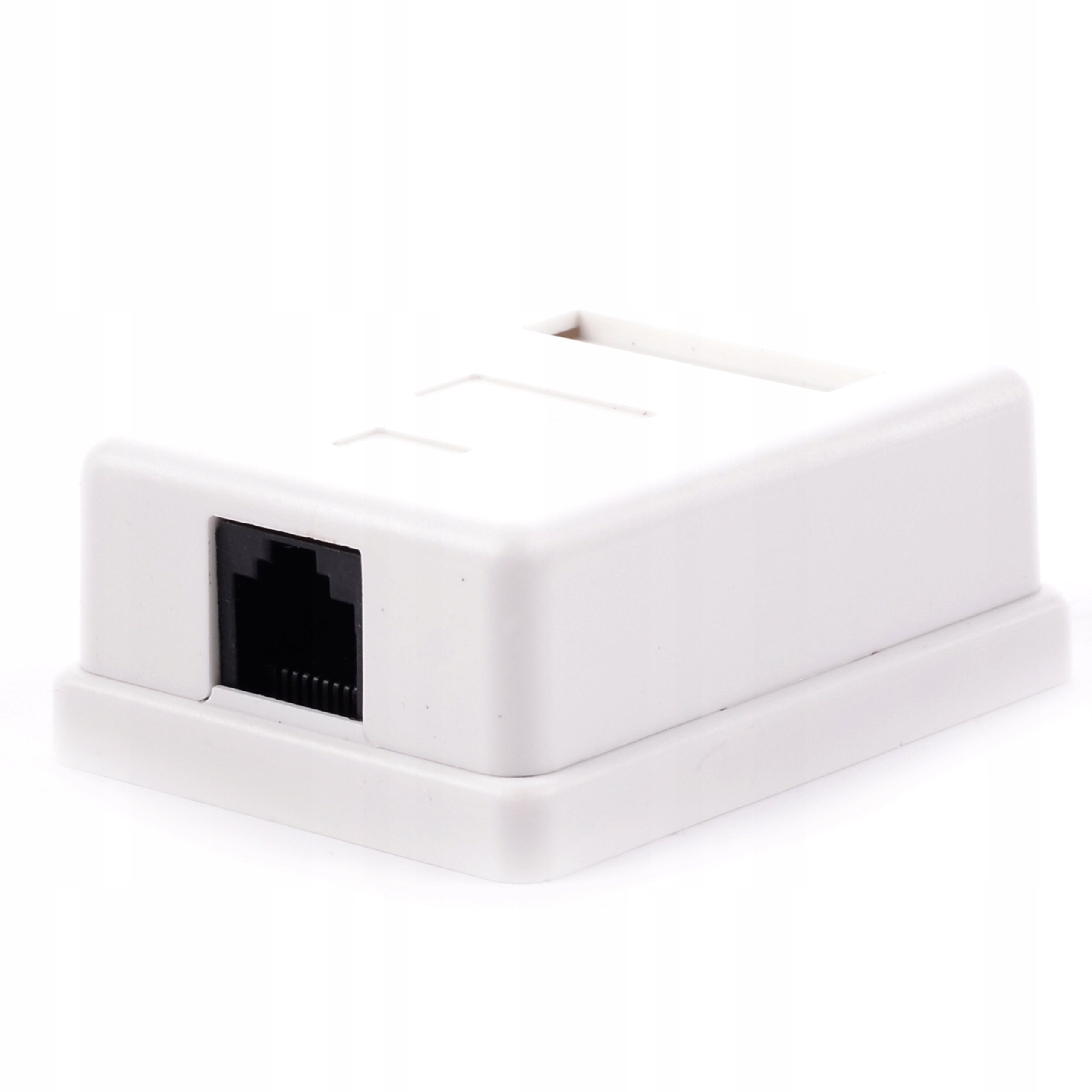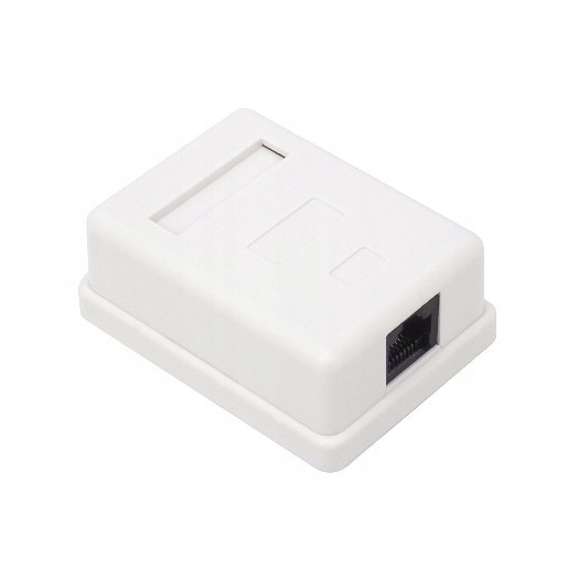 1xRJ45 UTP cat.5e розетка поверхневого монтажу для побудови локальної мережі. Кріпиться за допомогою двосторонньої клейкої стрічки або шурупів.