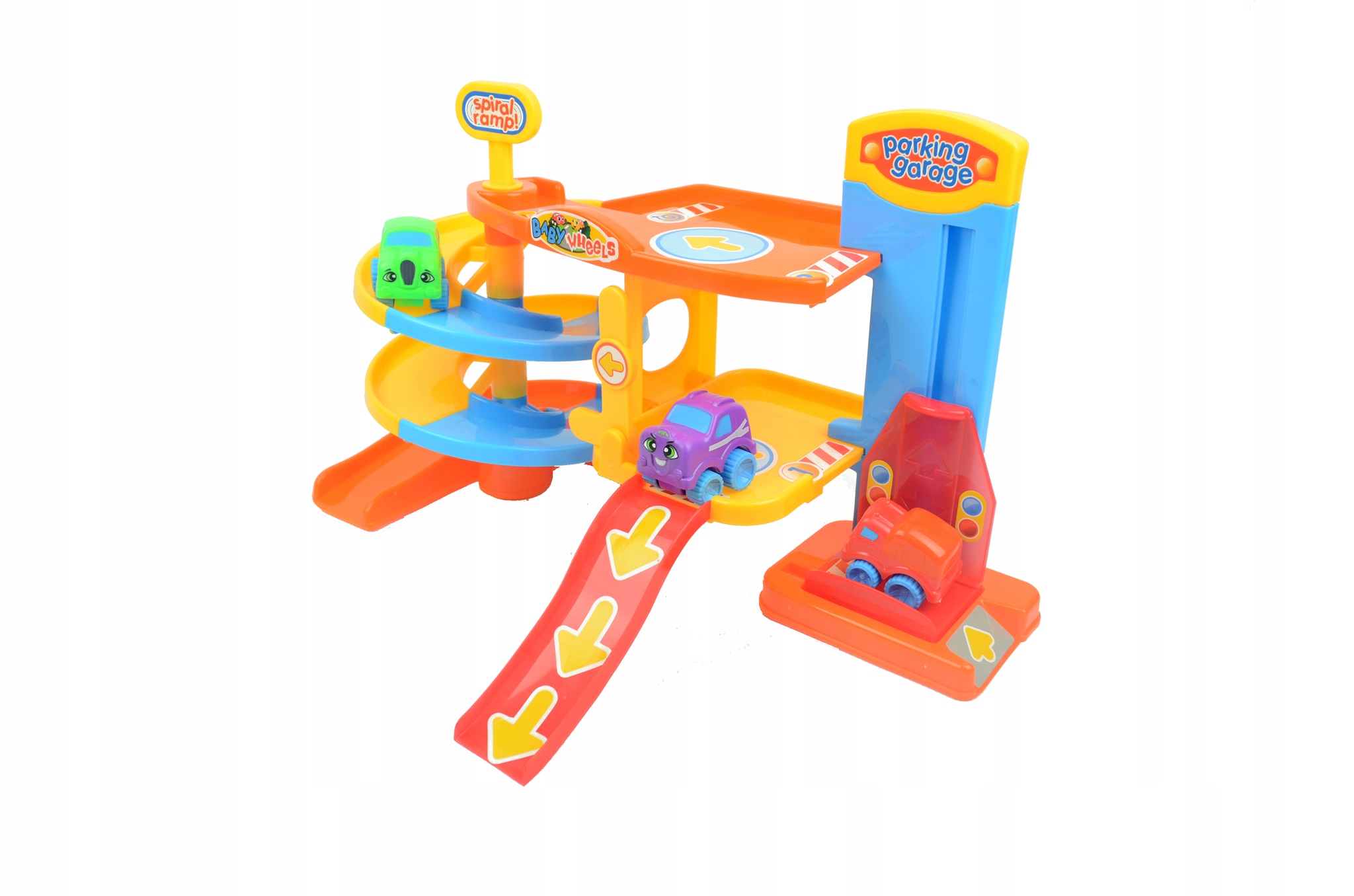 Це іграшка, до якої малюк нетерпляче повертається, оскільки вона дає багато можливостей творчої забави . Набір представляє двома парковки, ліфт , який транспортуватиме автомобілі на перший та другий рівень, слайд та спіральний пандус , після чого транспортні засоби будуть їсти на першому поверсі. На першому рівні є невелика стоянка, з якої можна спуститися по слайді. Діставшись до другого поверху вручну ліфтом, ми знайдемо трохи більшу стоянку, з якої ви зможете вийти як з ліфта, так і з шаленого спуску з пандусу. На першому поверсі знаходиться вхід до ліфта, позначений стрілою.